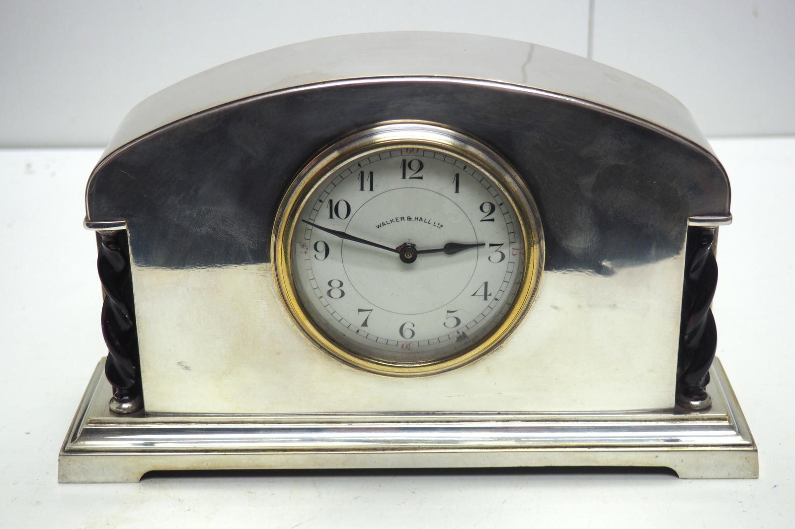 Antique Silver Plate Walker & Hall Edwardian Silver Mantle Clock (1 of 9)