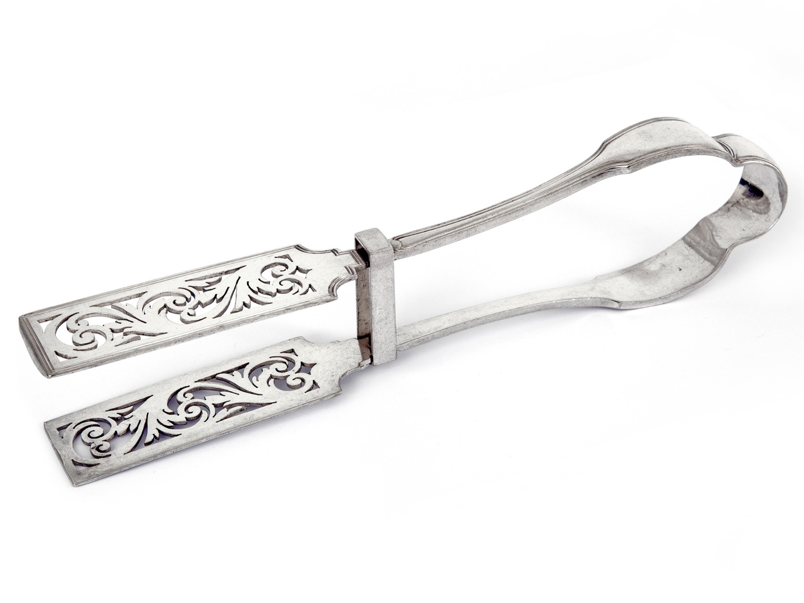 Antique Silver Plated Asparagus Tongs with a Horse Crest