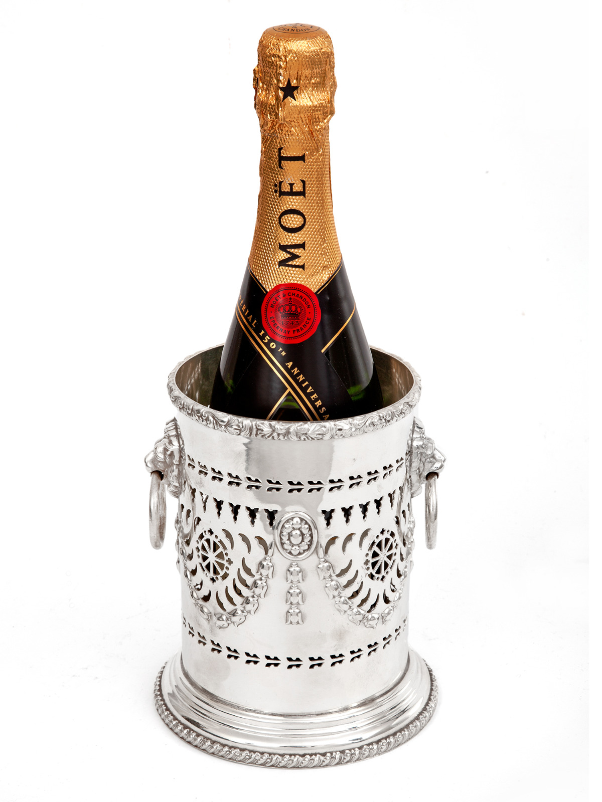 Antique Silver Plated Bottle Stand with Pierced Body & Lion Mask Looped Handles (1 of 4)