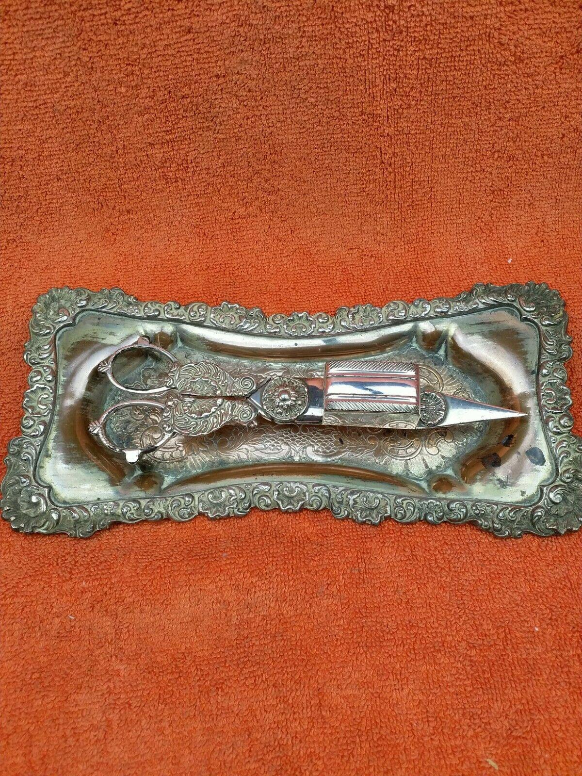 Antique Silver Plated Candle Snuffer & Tray c.1840