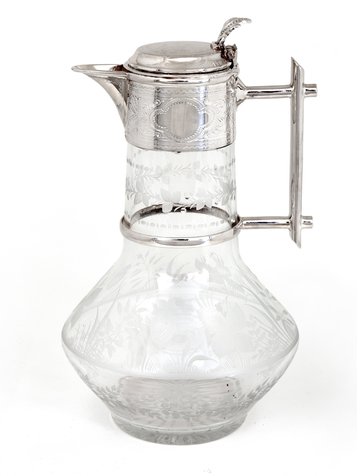 Antique Silver Plated Claret Jug with a Glass Body Shape in the Style of Christopher Dresser (1 of 1)