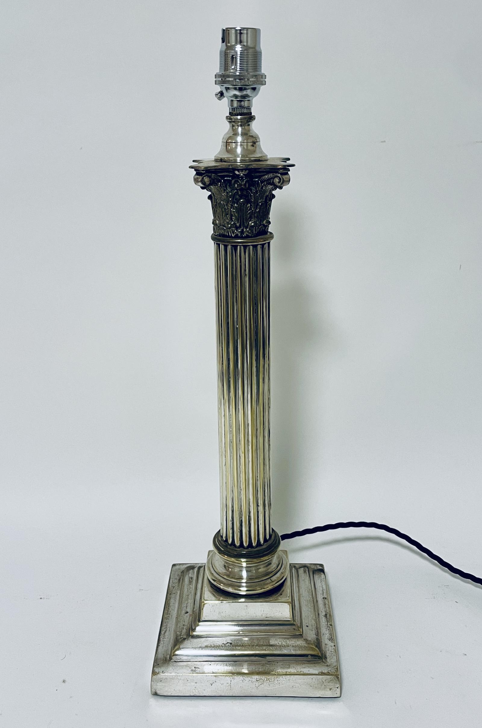 Antique Silver Plated Corinthian Column Table Lamp