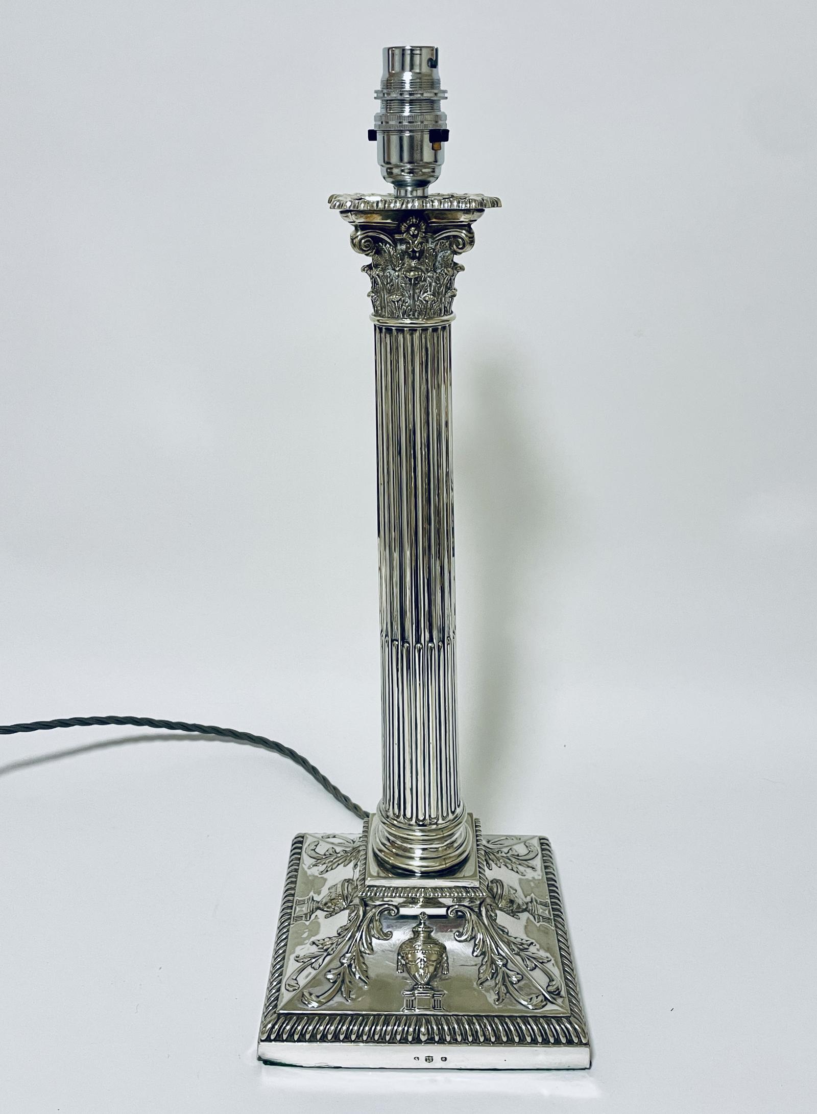 Antique Silver Plated Corinthian Column Table Lamp (1 of 10)
