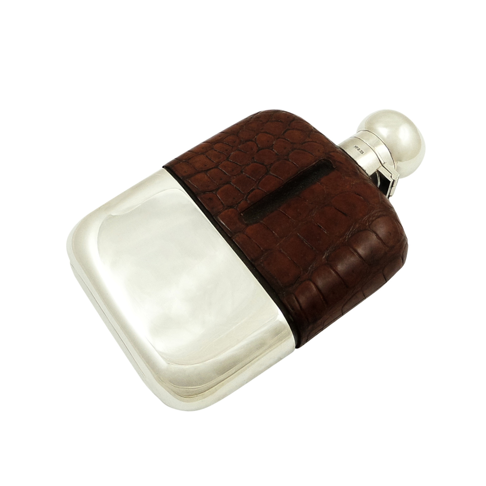 Antique Silver Plated & Crocodile Hip Flask c.1880