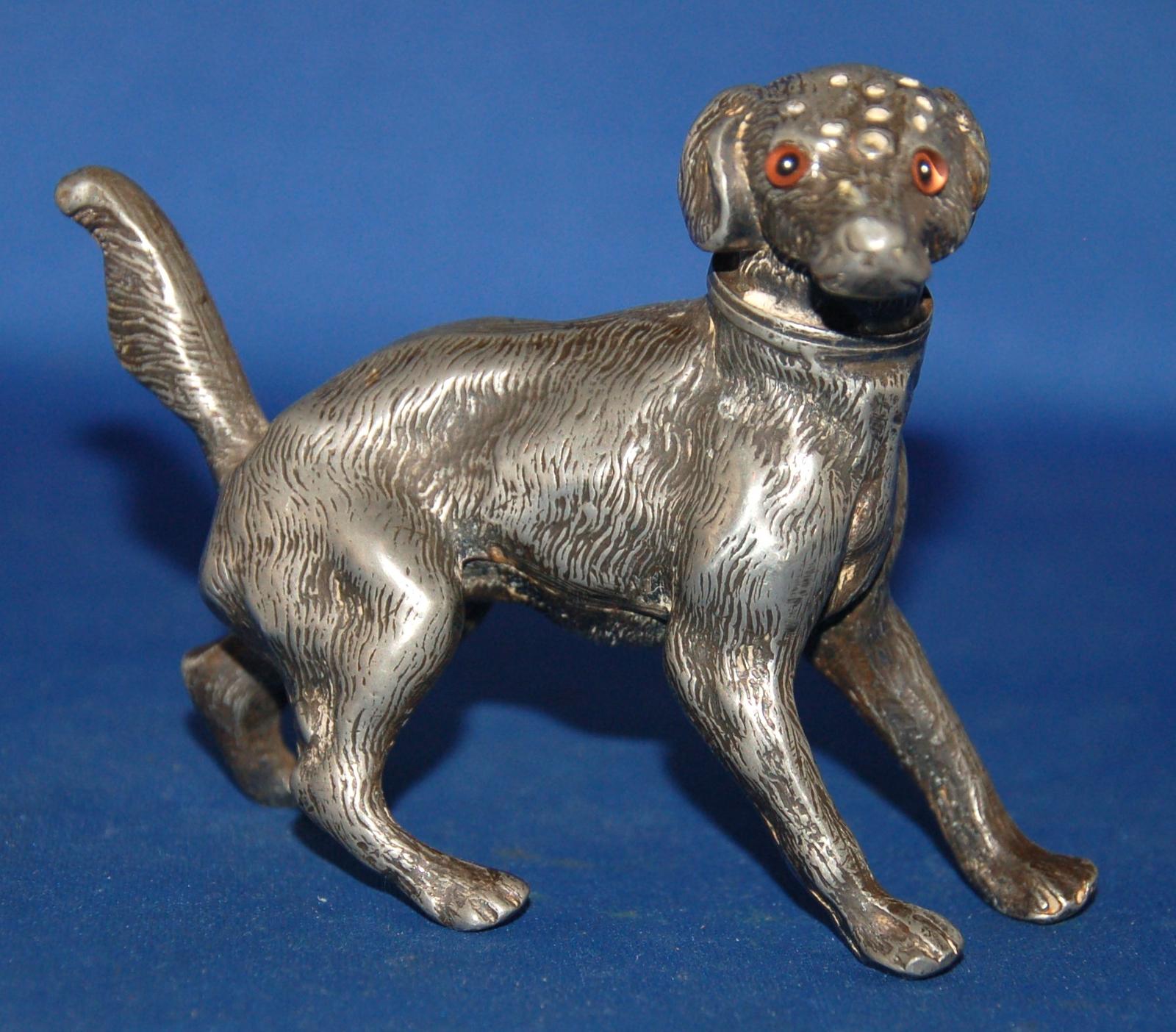 Antique Silver Plated Hound Dog Silver Plated Pounce Shaker or Pepperette