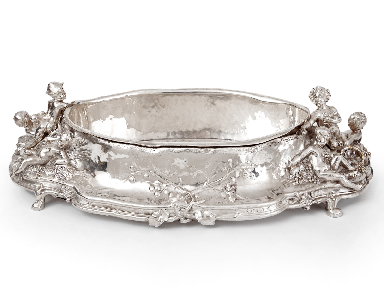 Antique Silver Plated Jardiniere with Scenes of Cherubs Picking Grapes & Cherubs in a Barley Field (1 of 8)