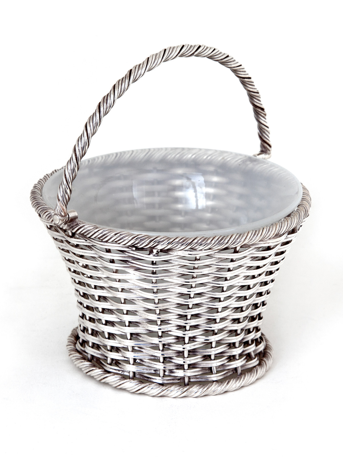 Antique Silver Plated Sugar Basket with a Woven Wire Work Body & Original Opeline Liner