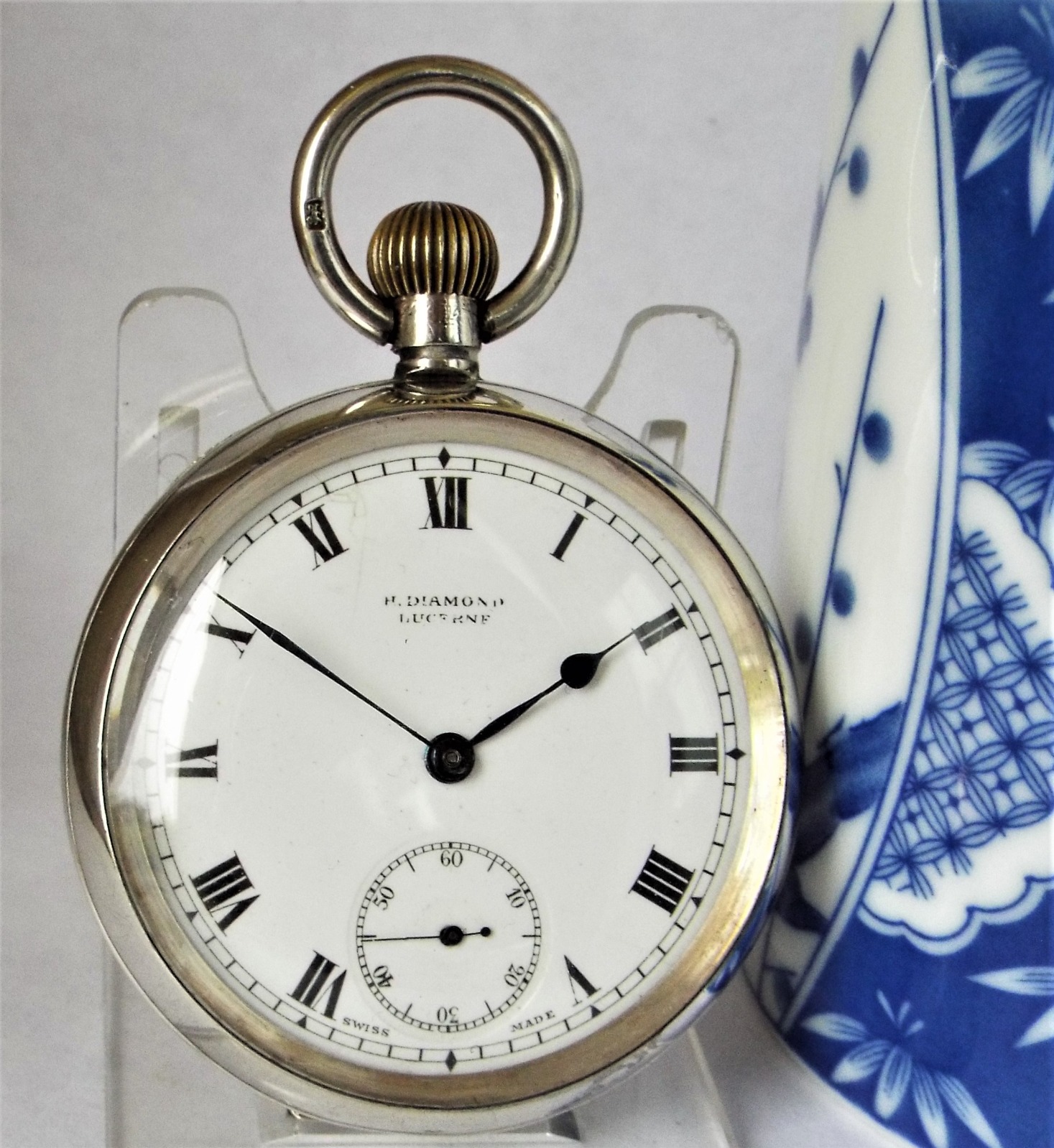 Antique Silver Pocket Watch, 1913 H Diamond Lucerne