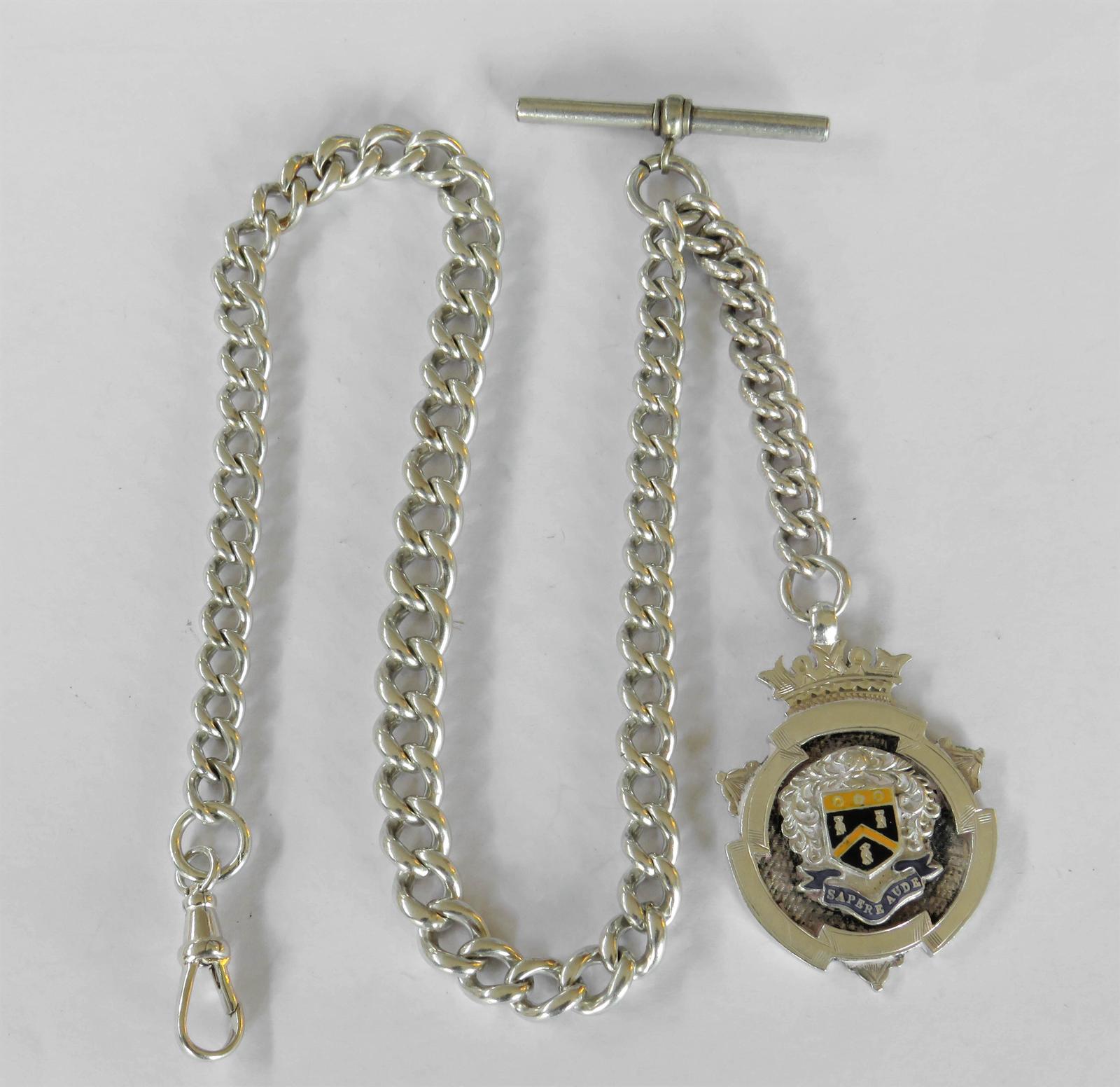 Antique Silver Pocket Watch Chain and Oldham Fob