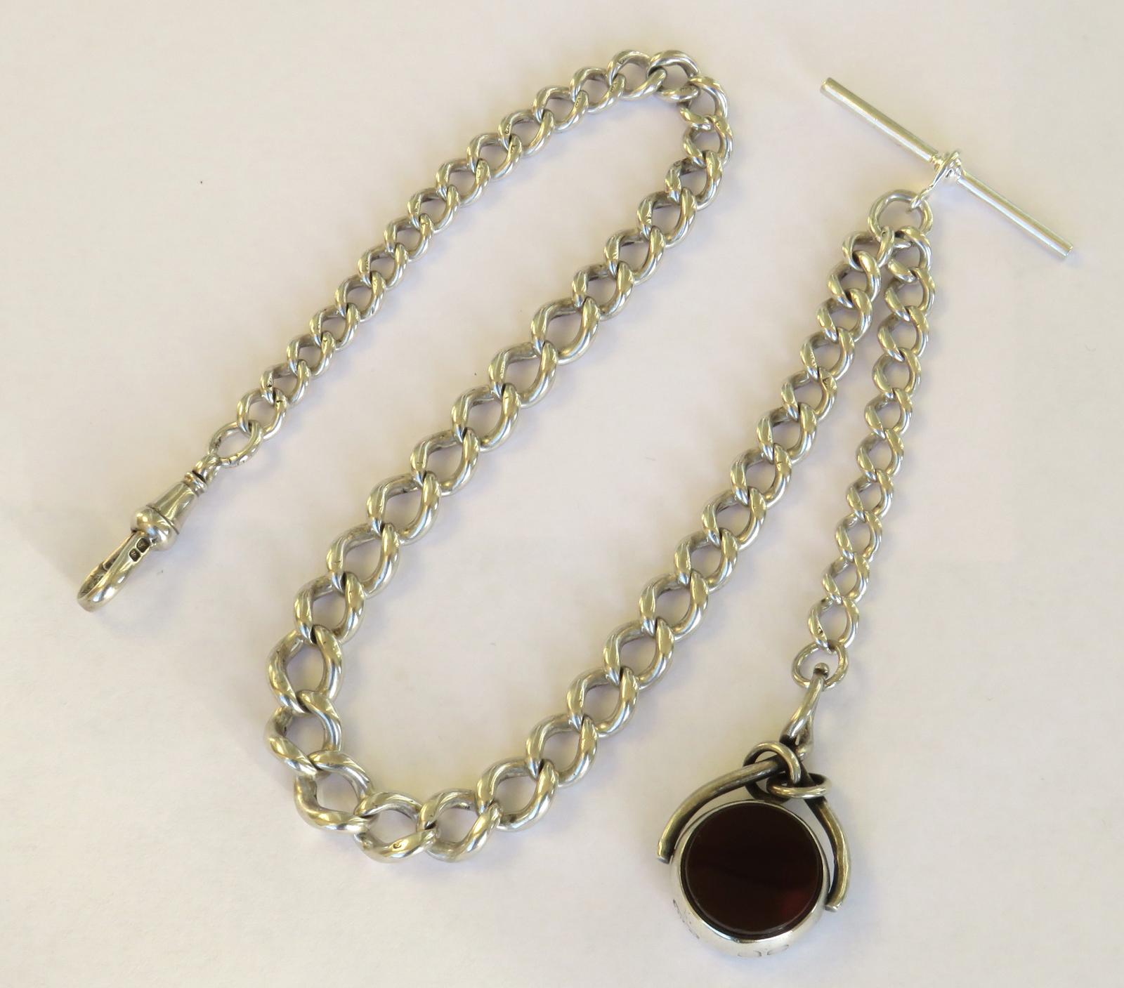 Antique Silver Pocket Watch Chain and Swivel Fob