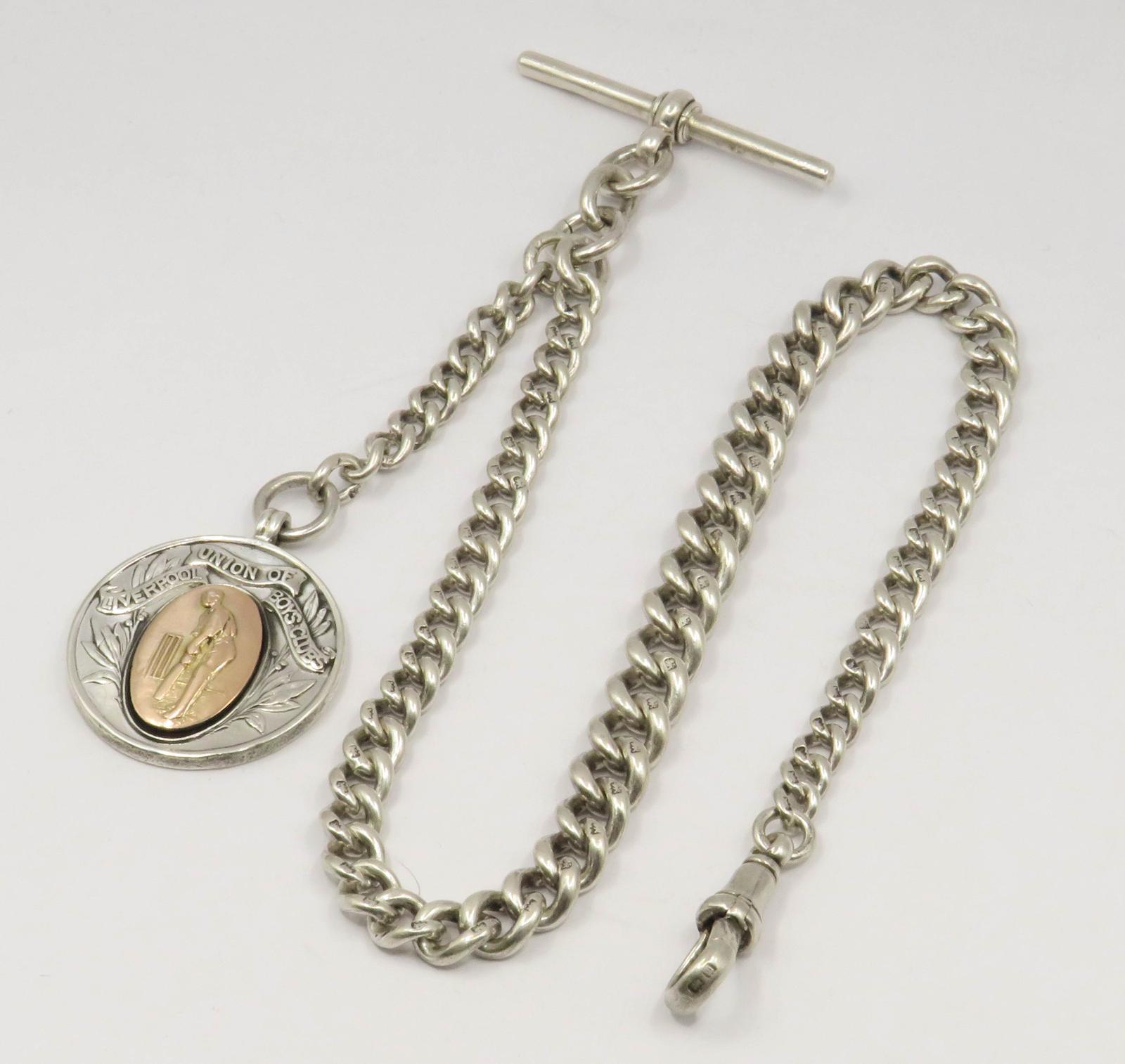 Antique Silver Pocket Watch Chain & Cricket Fob