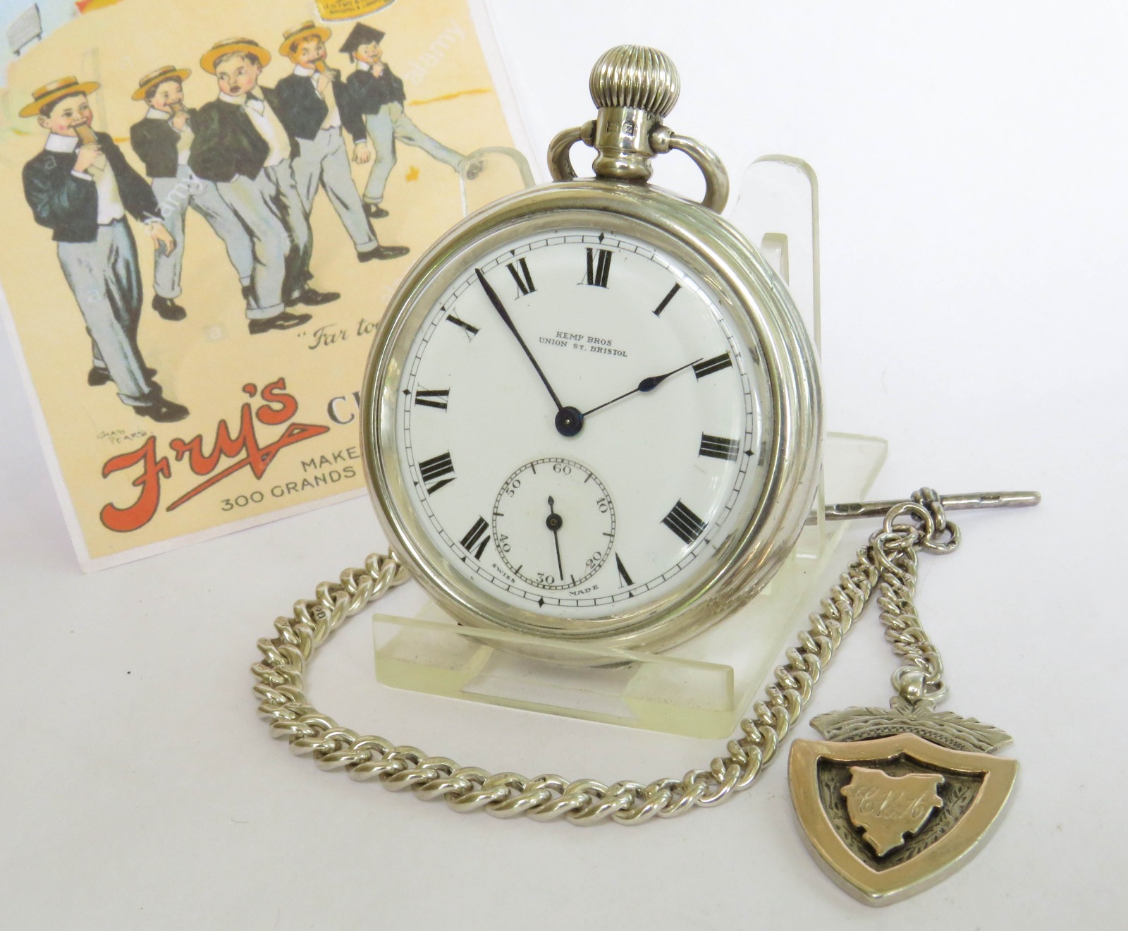 Antique Silver Pocket Watch & Chain, Frys Chocolate, Bristol