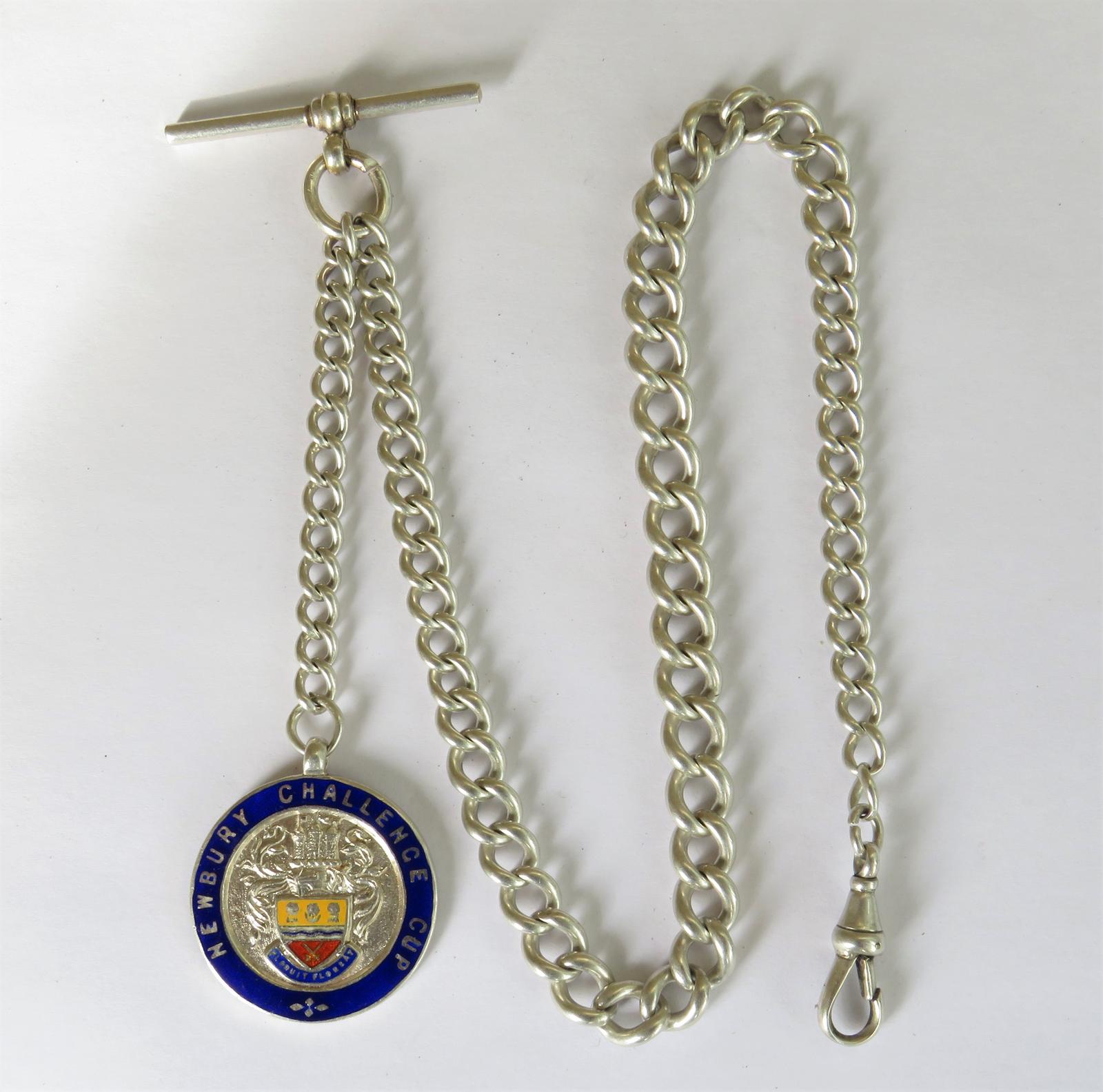 Antique Silver Pocket Watch Chain, Newbury Challenge Cup