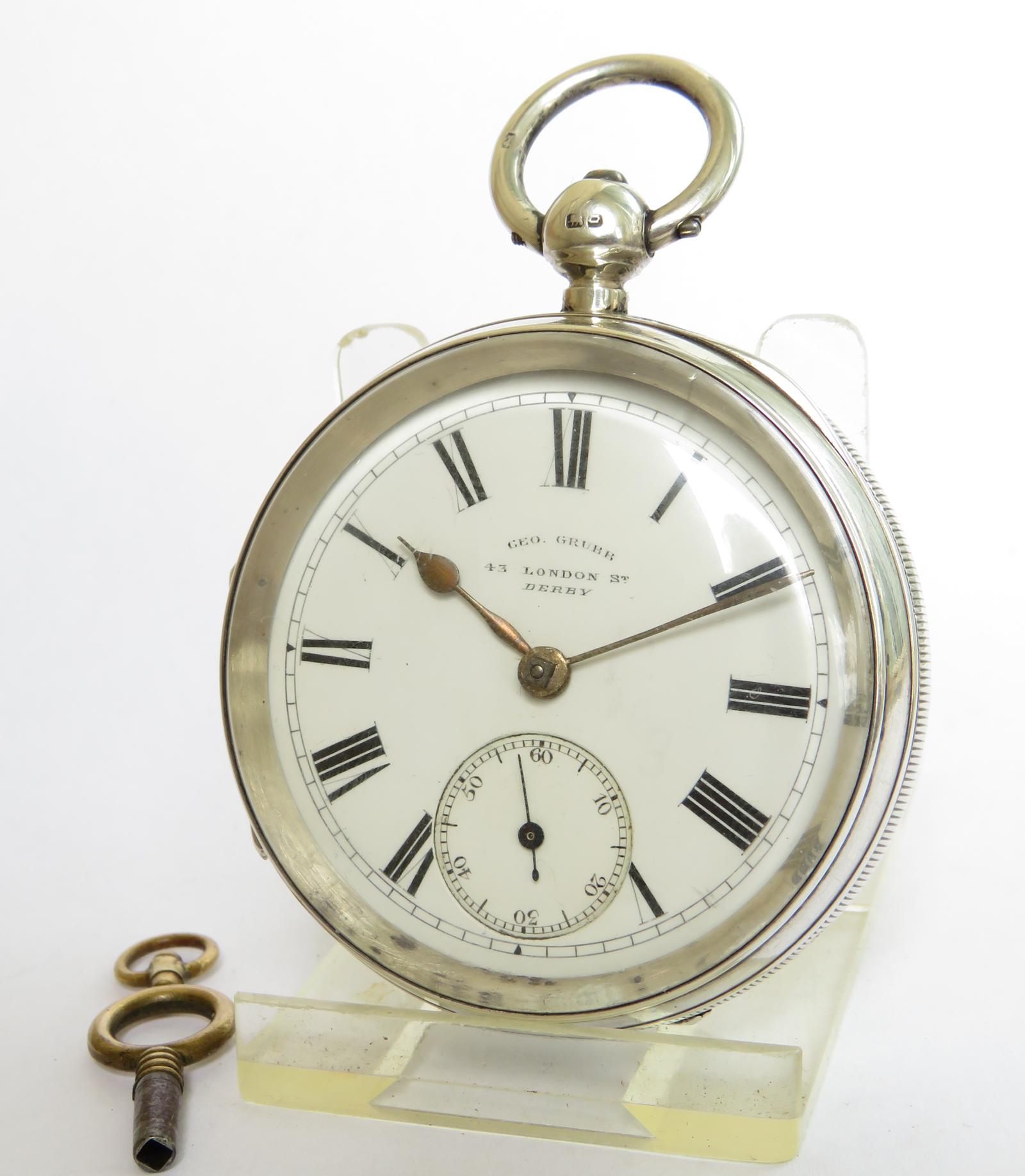 Antique Silver Pocket Watch, Geo Grubb, Derby, 1888