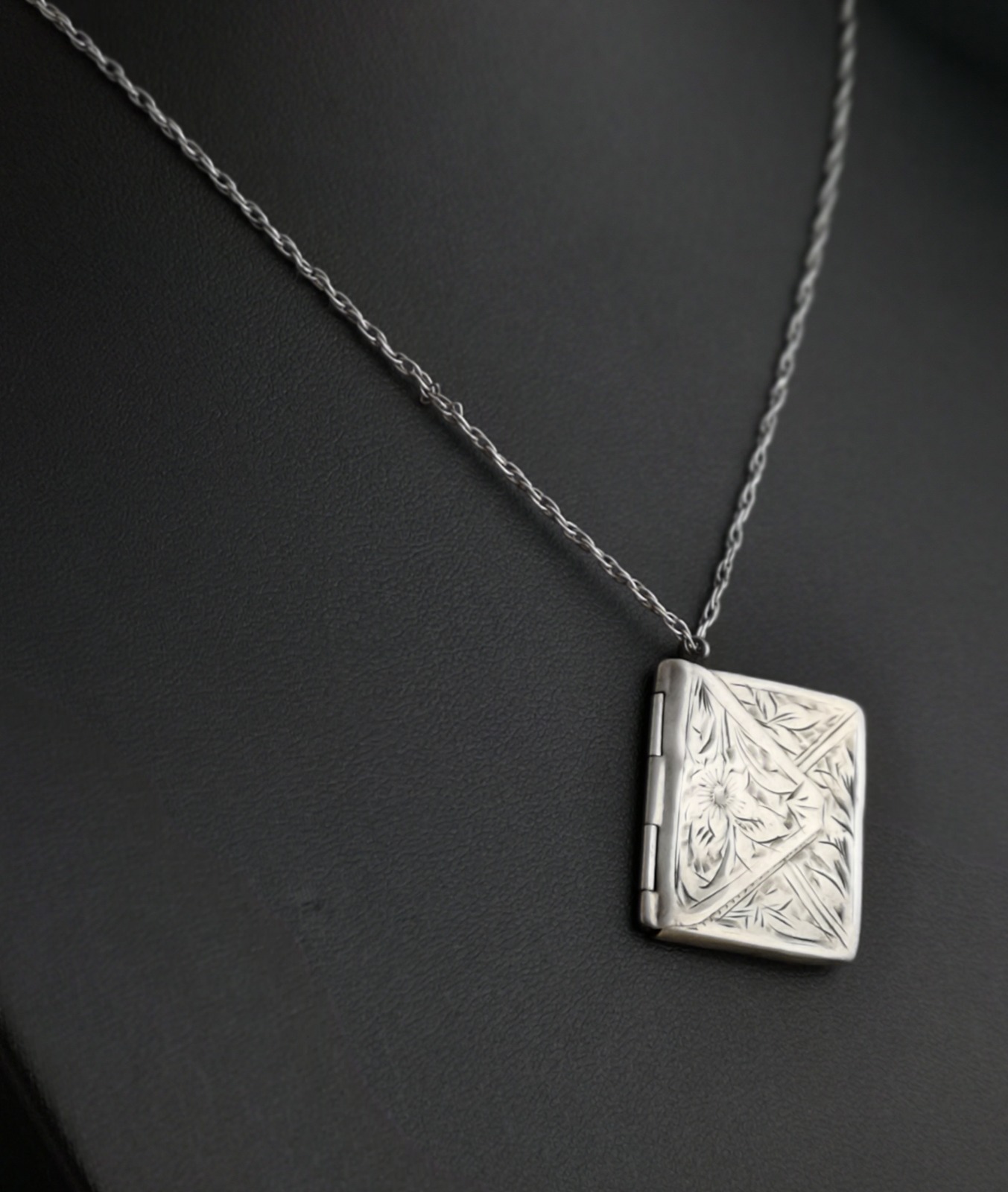 Antique Silver Stamp Case Pendant, Edwardian Necklace