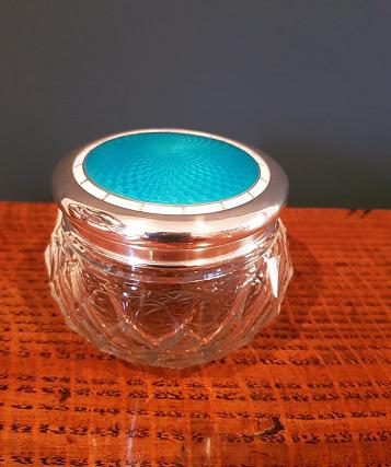 Antique Silver & Turquoise Enamel Dressing Table Jar