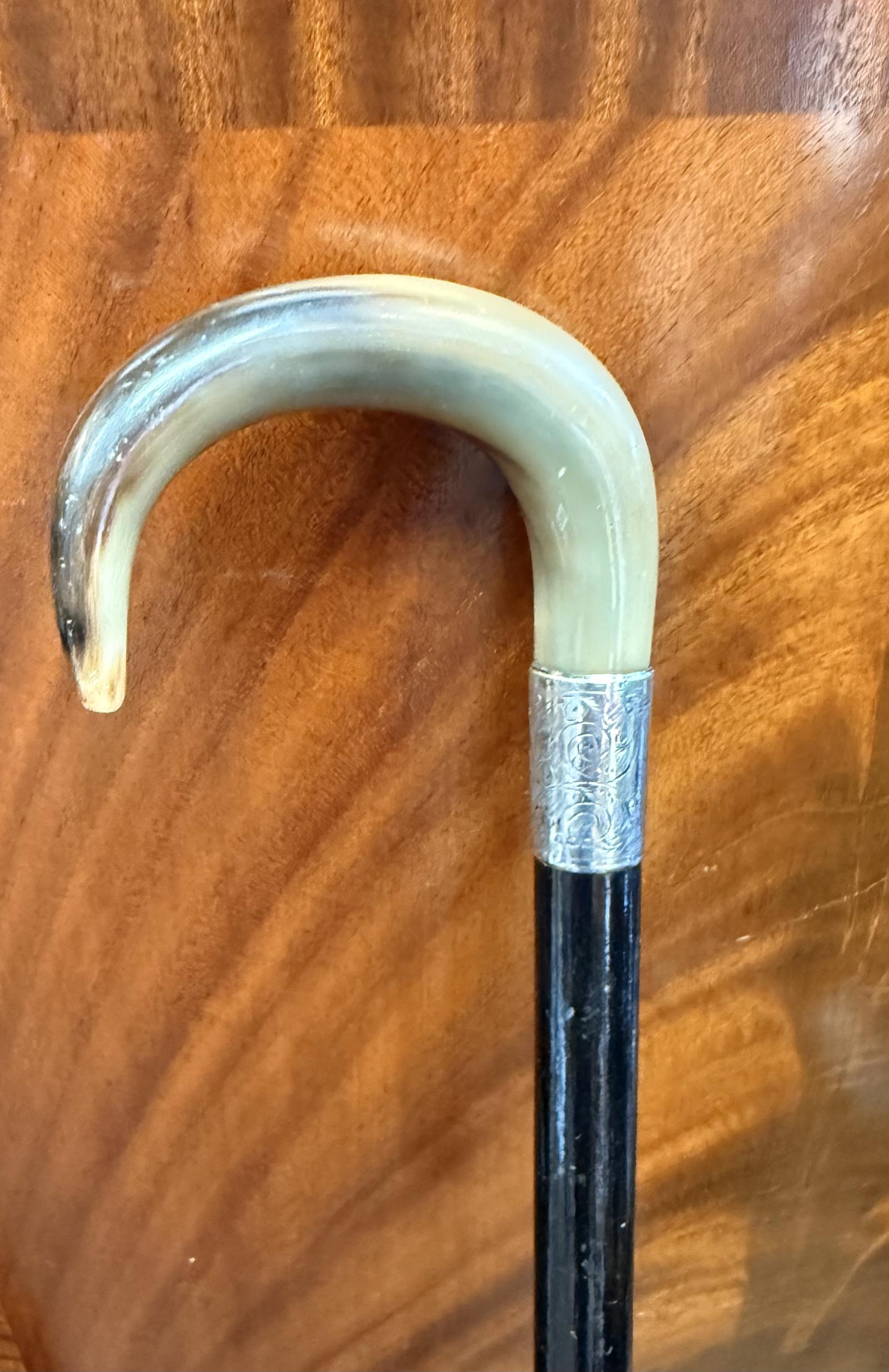 Antique Silver Walking Stick Bovine Horn London 1916 (1 of 5)