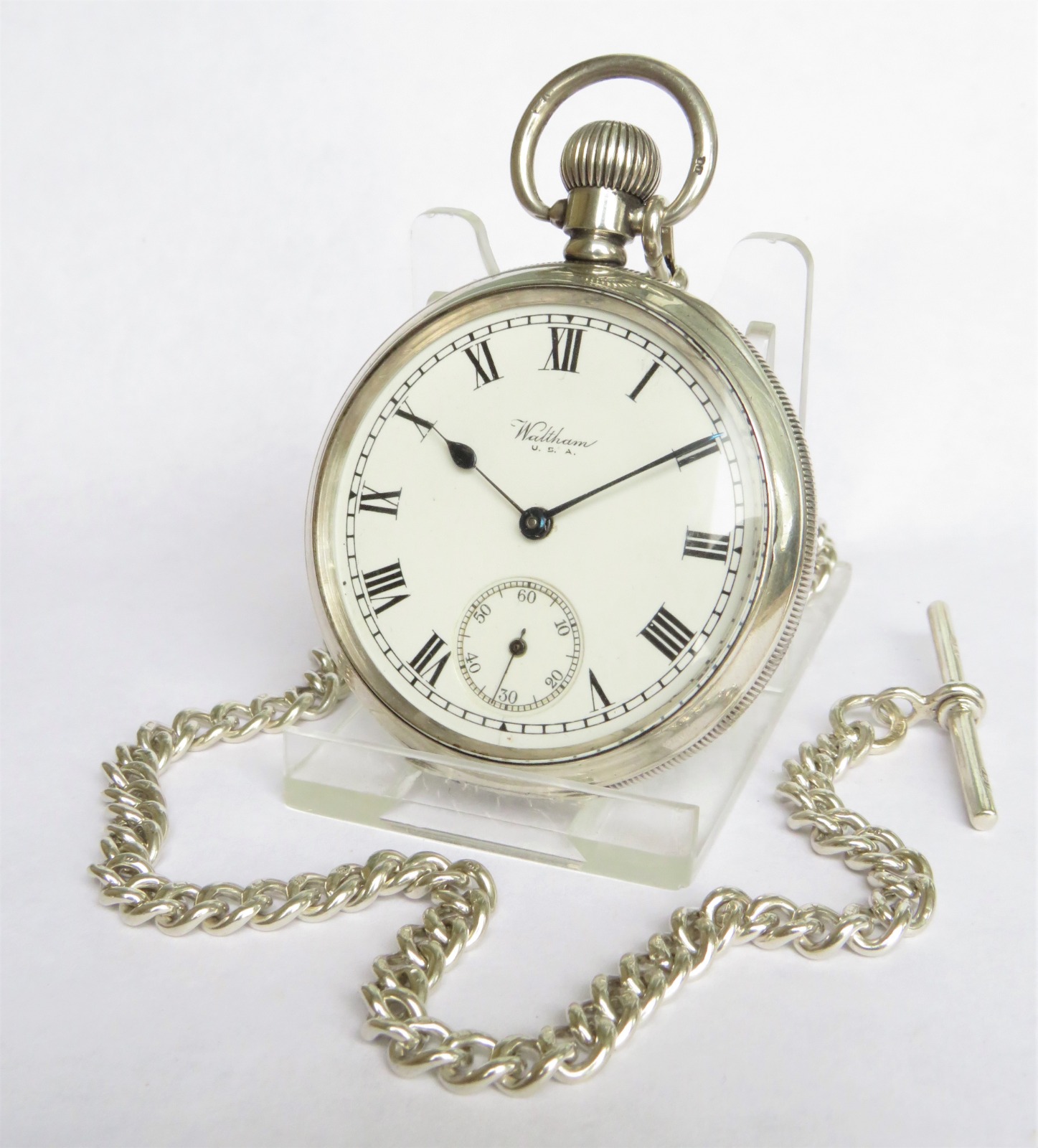 Antique Silver Waltham Bartlett Pocket Watch and Chain