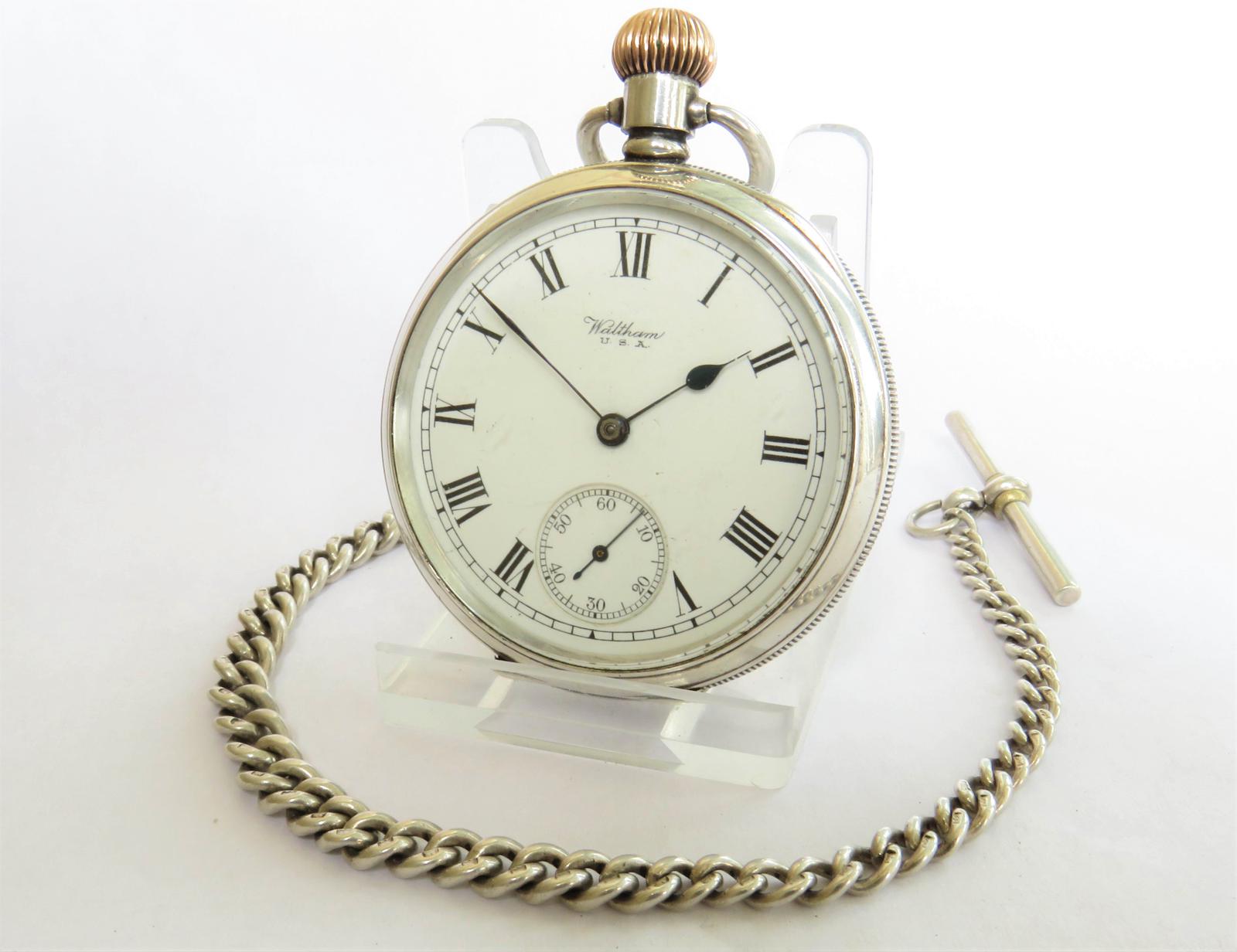 Antique Silver Waltham Pocket Watch and Chain
