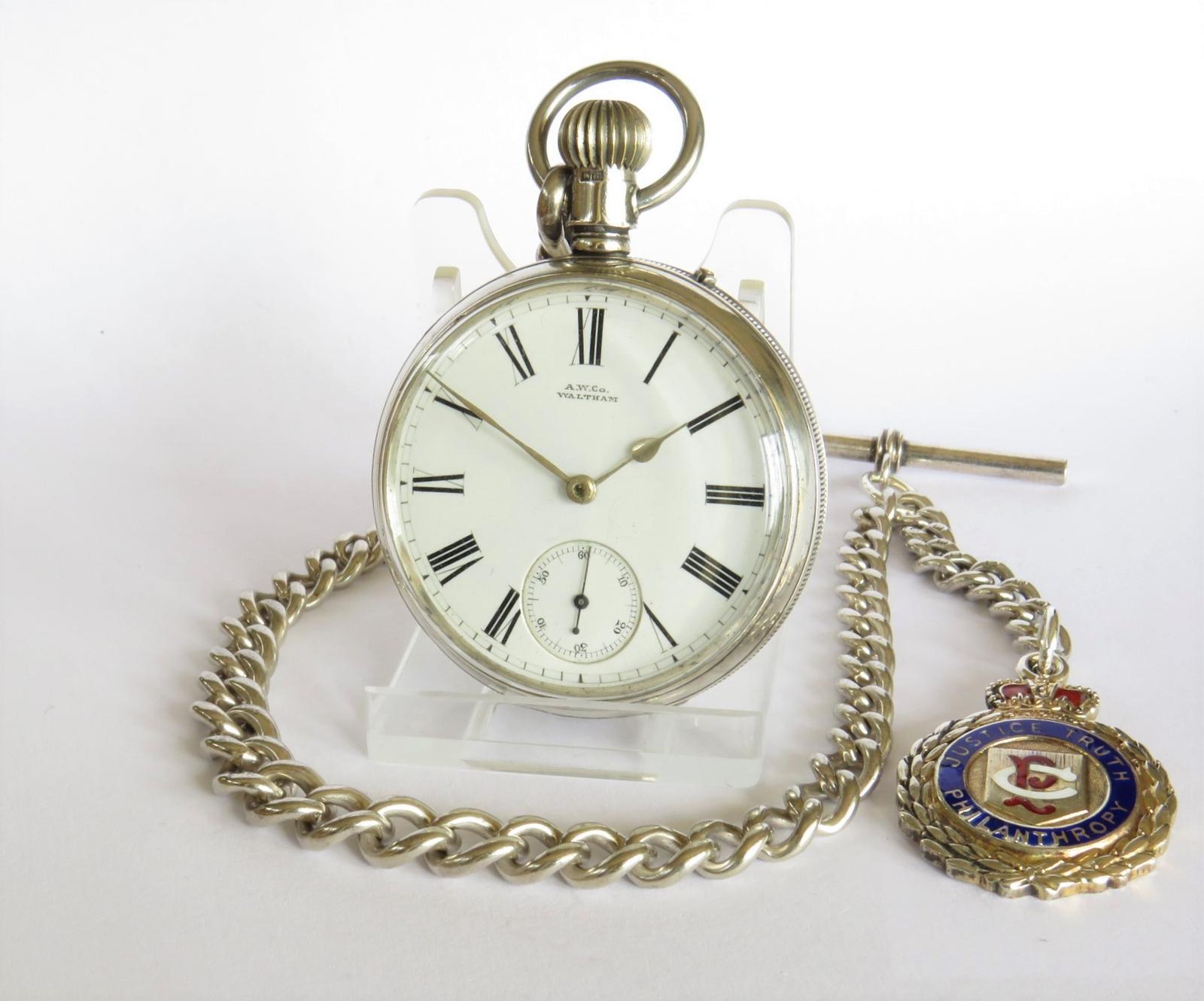 Antique Silver Waltham Pocket Watch & Chain