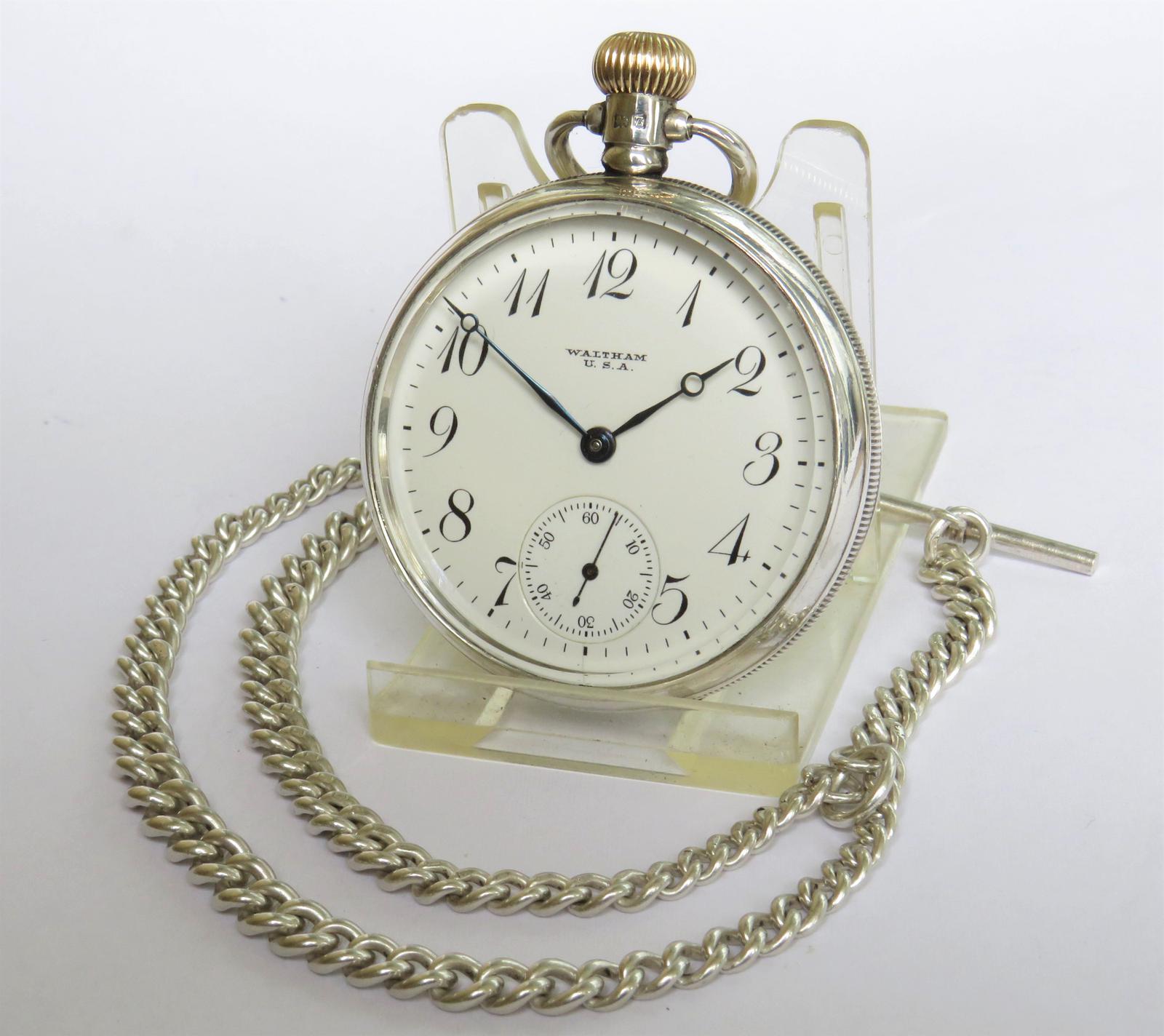 Antique Silver Waltham Pocket Watch with Chain