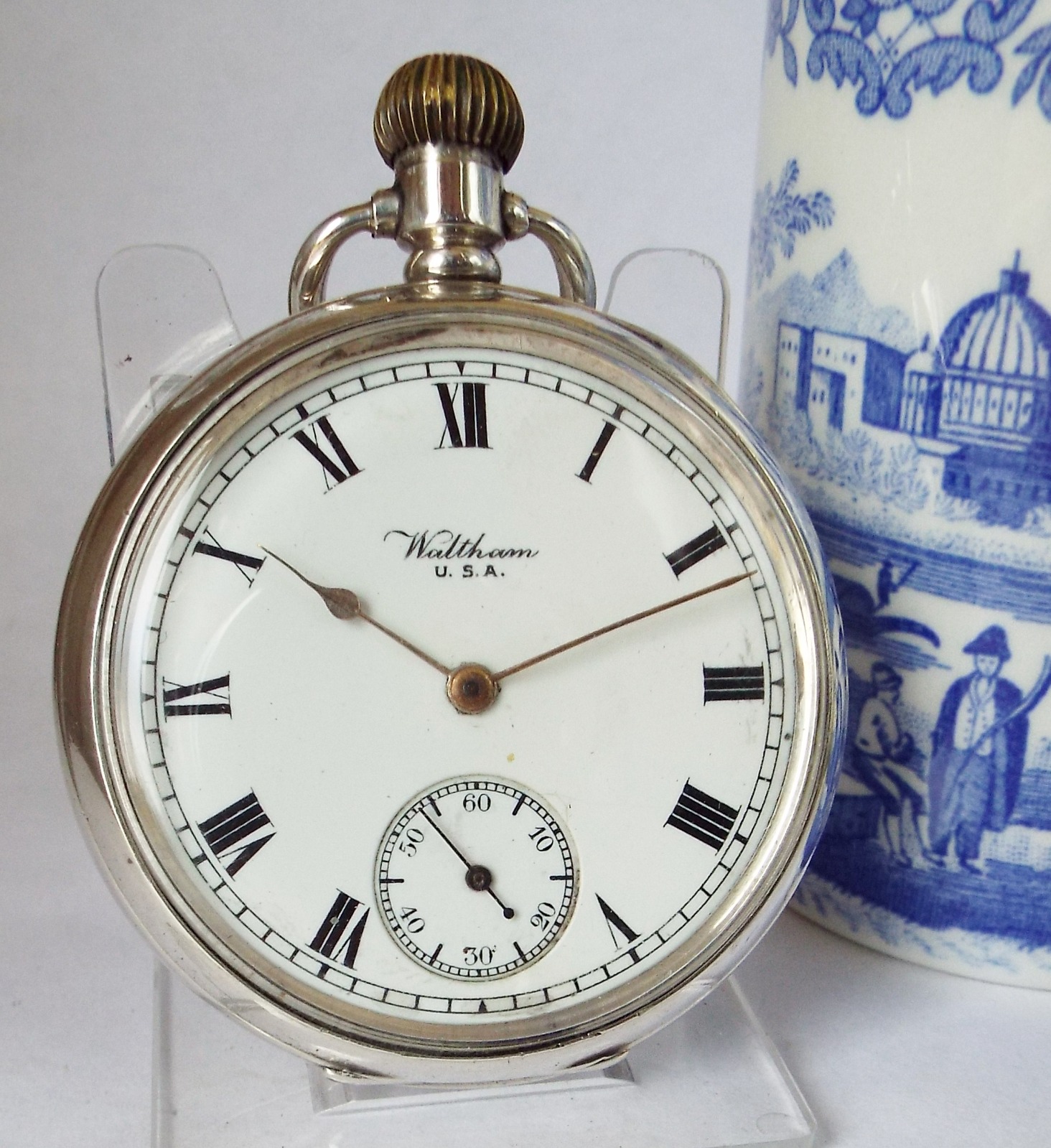 Antique Silver Waltham Traveler Pocket Watch 1918