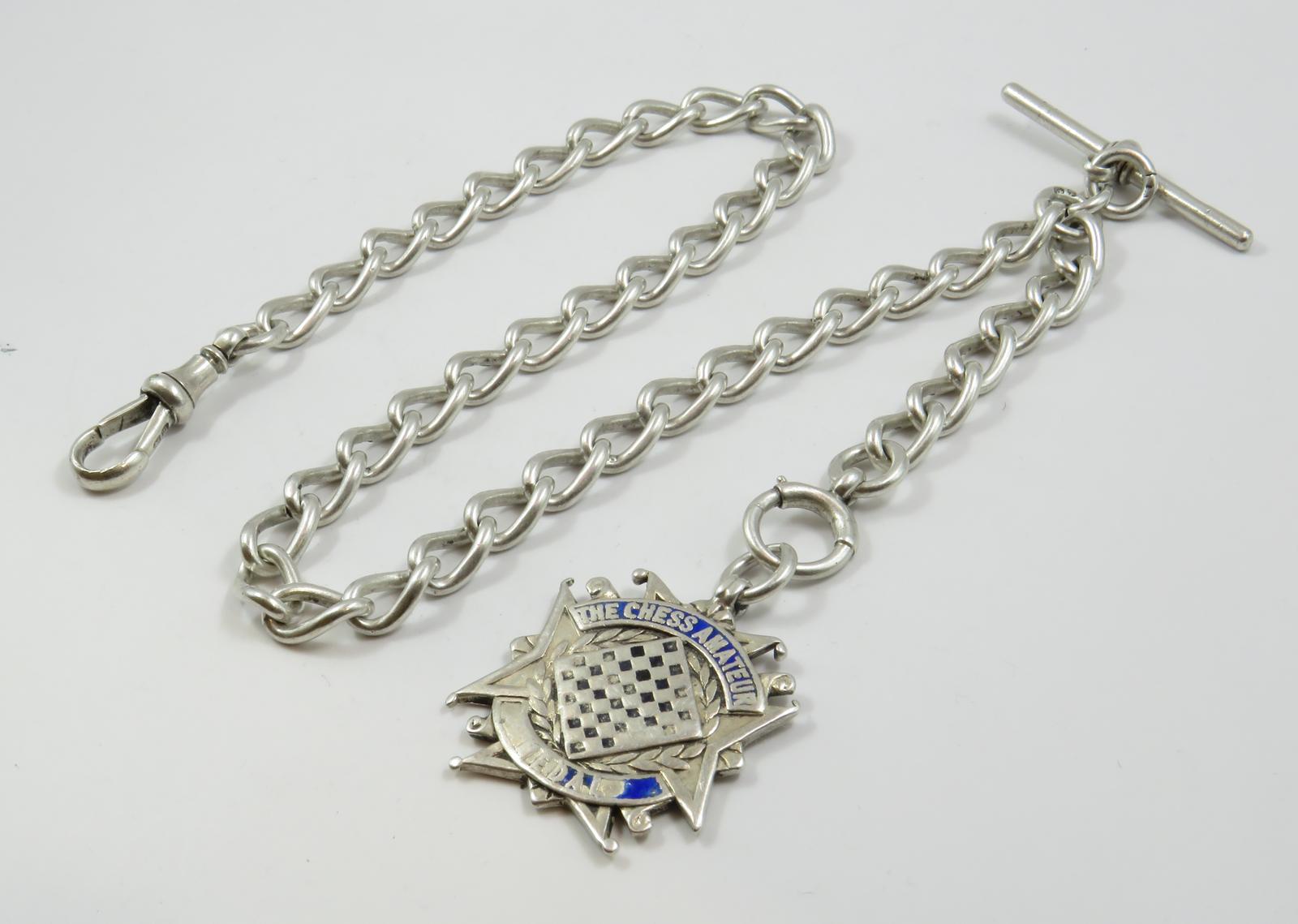 Antique Silver Watch Chain and Chess Fob
