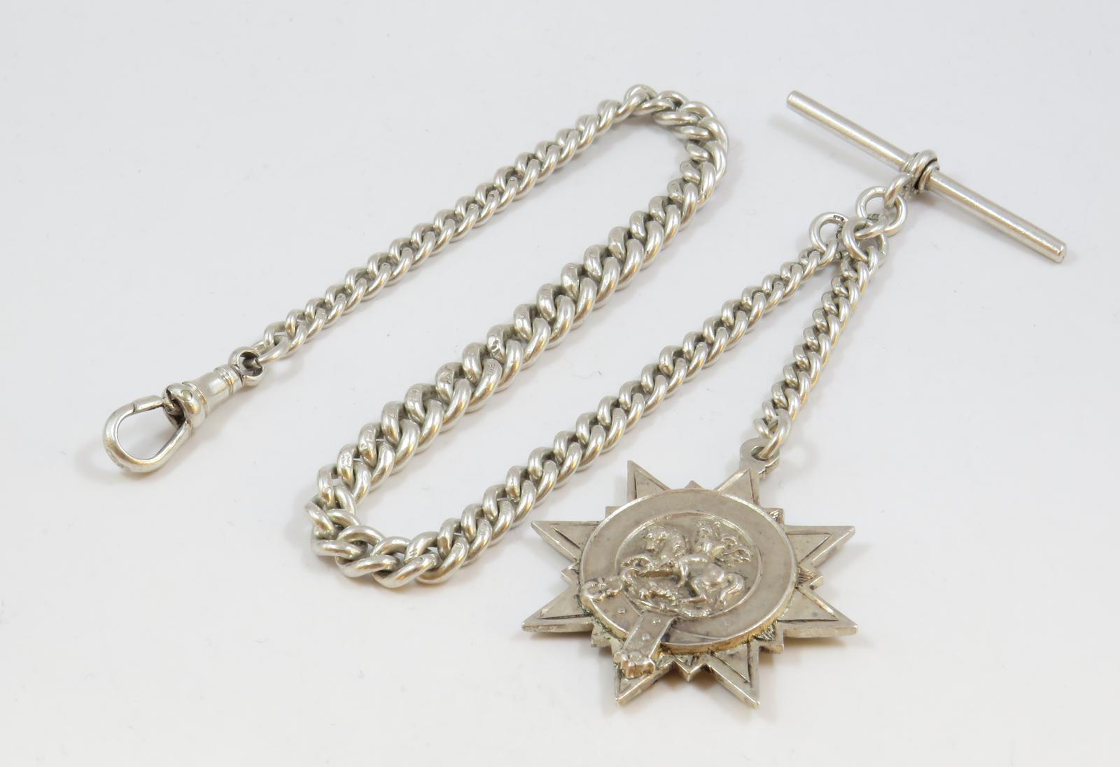 Antique Silver Watch Chain & Fob