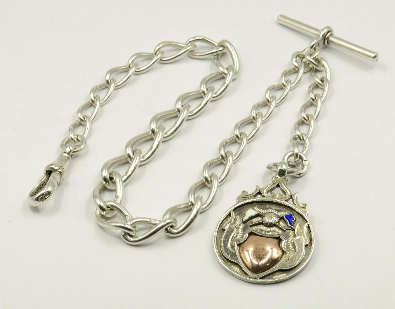 Antique Silver Watch Chain & Fob