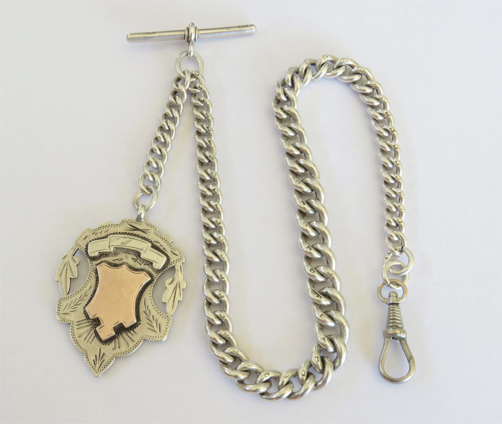 Antique Silver Watch Chain & Large Fob