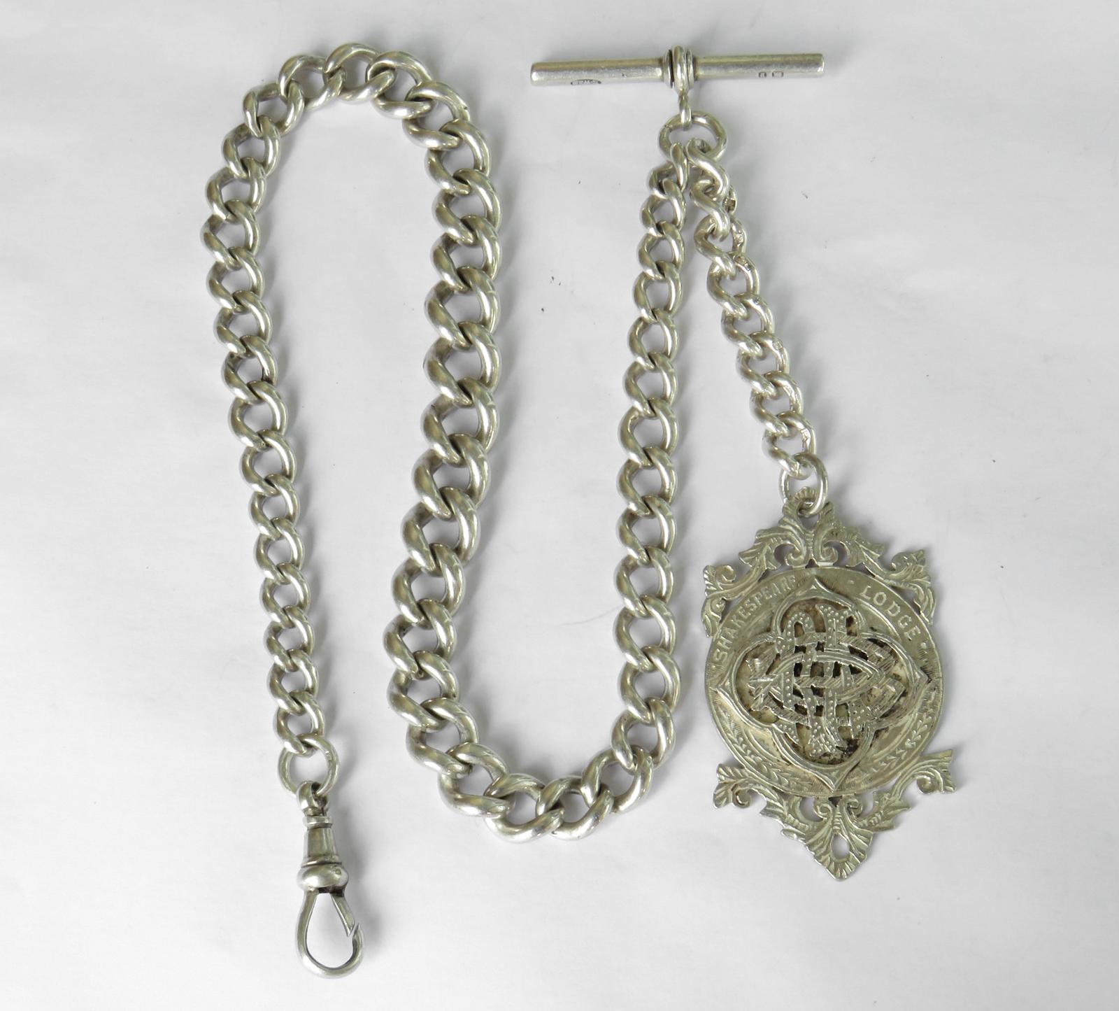Antique Silver Watch Chain & Masonic Fob