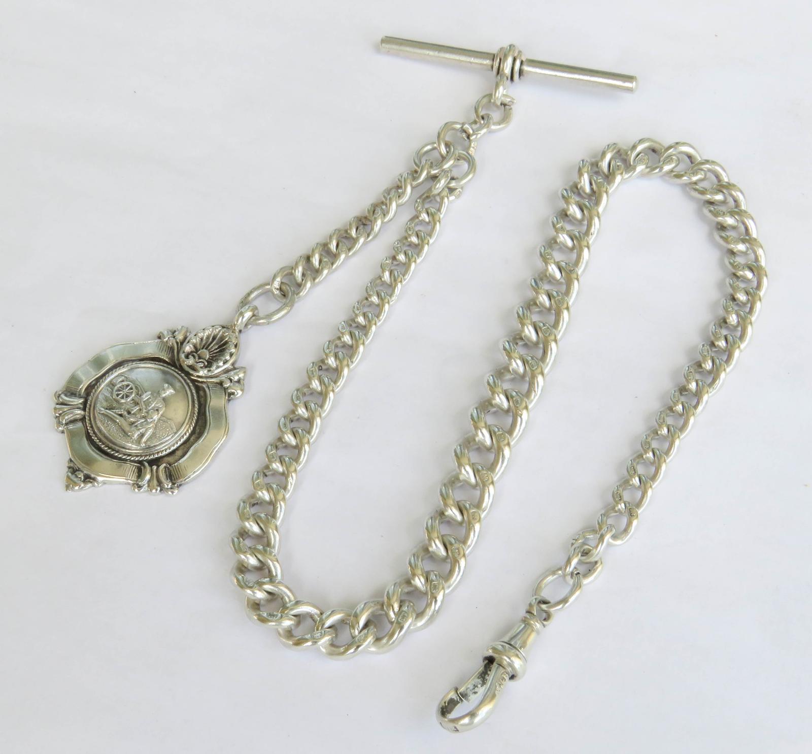 Antique Silver Watch Chain & Royal Navy Fob