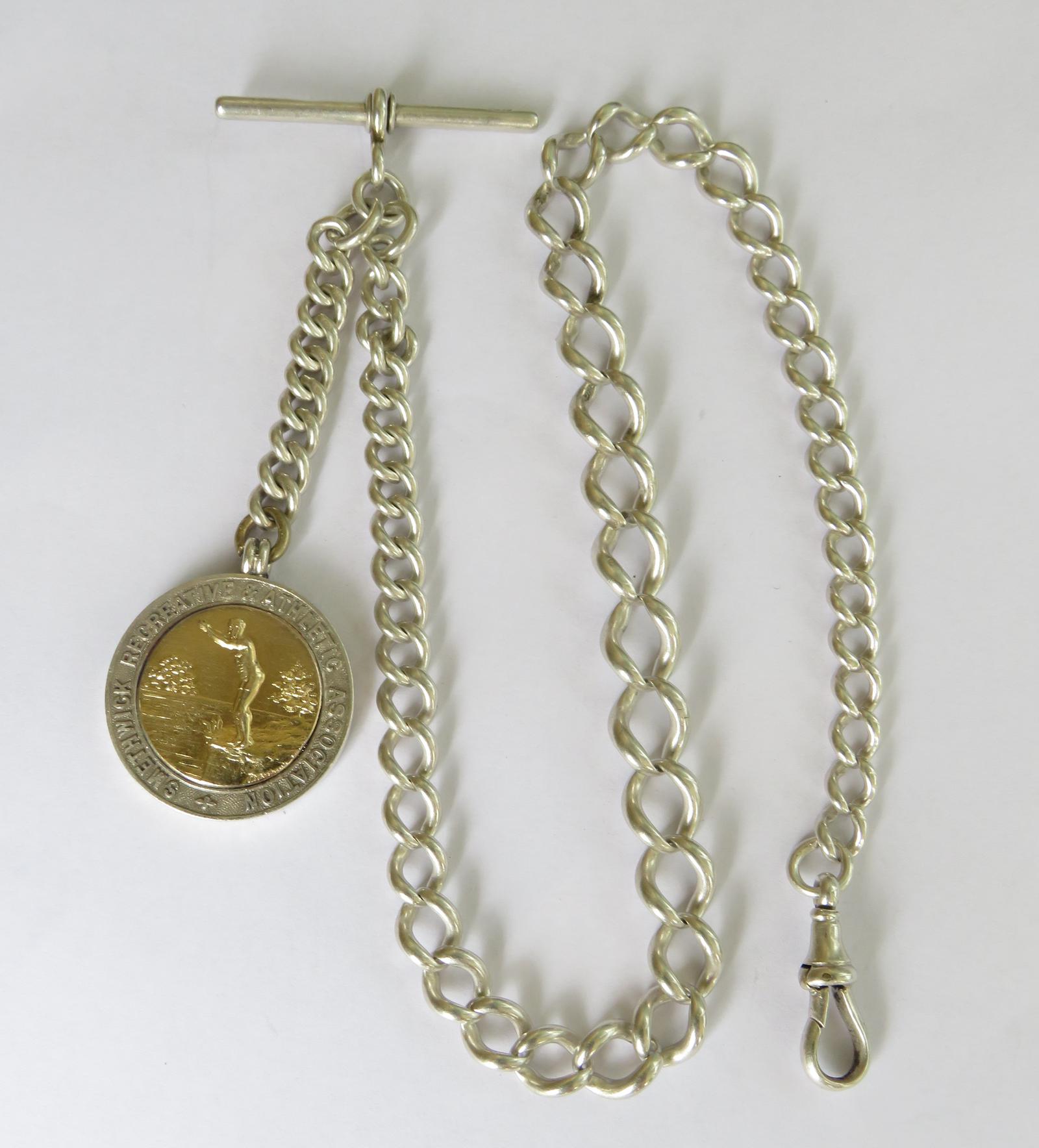 Antique Silver Watch Chain & Swimming Fob