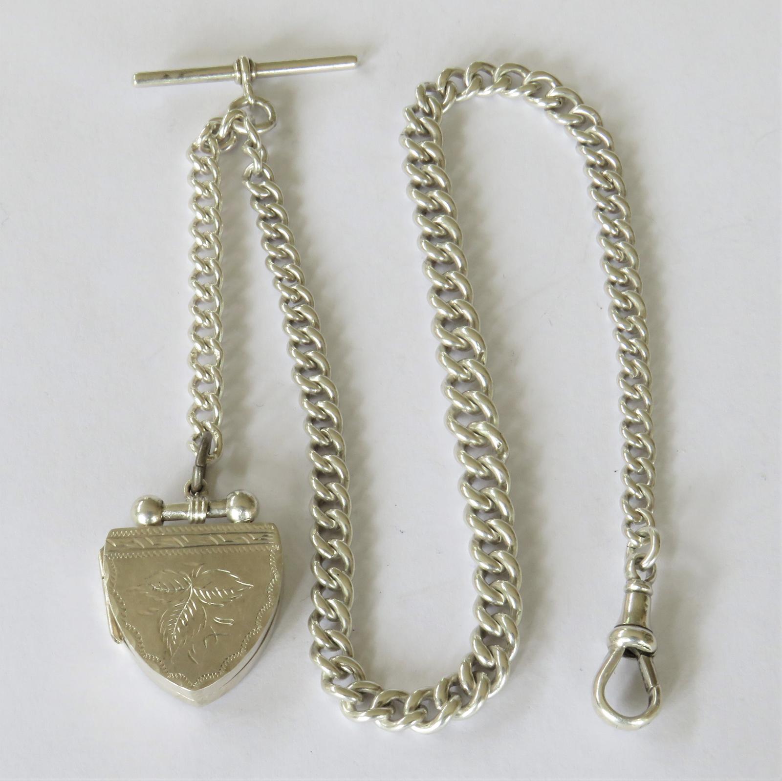 Antique Silver Watch Chain with Unusual Locket