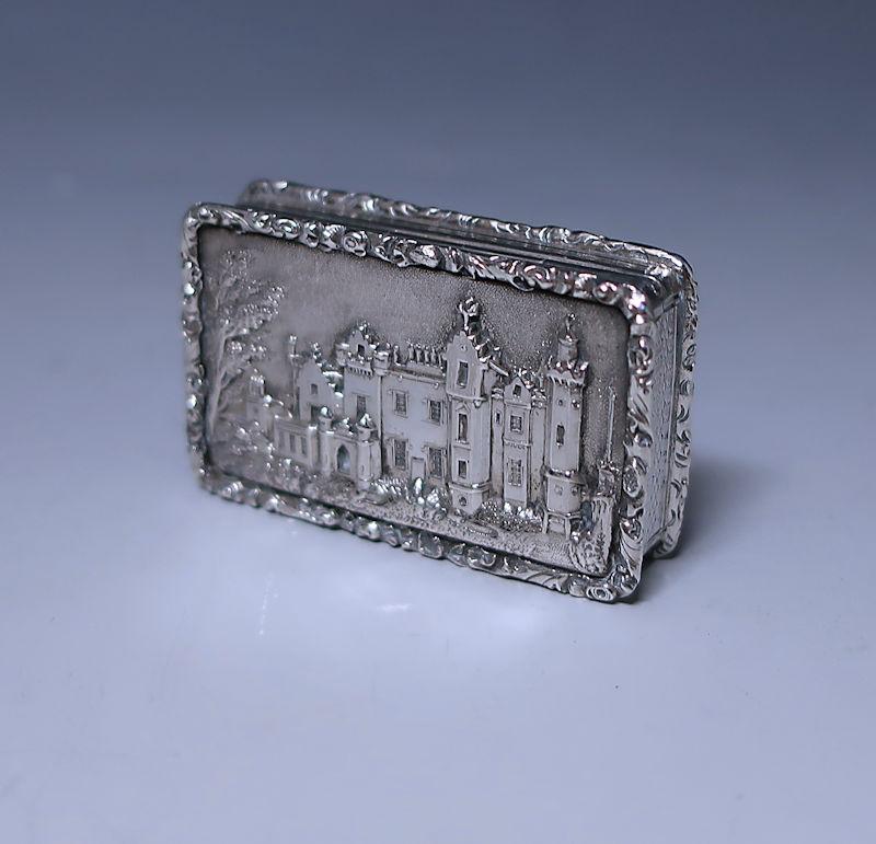 Antique Silver William IV Vinaigrette Made in 1836 Depicting Abbotsford House