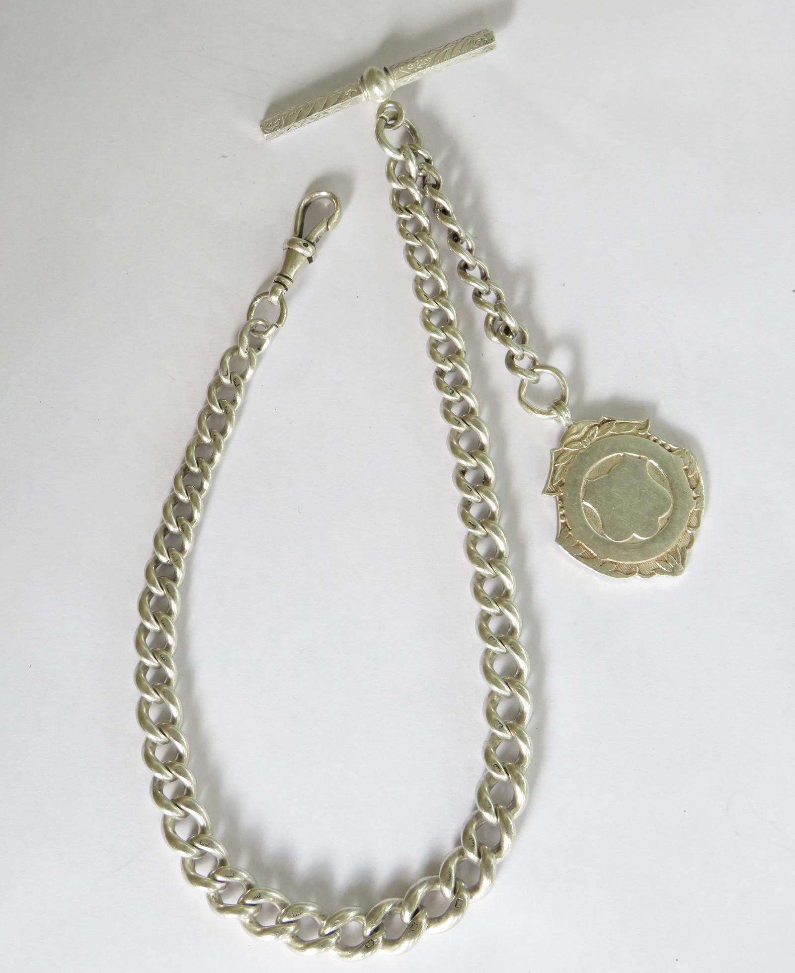 Antique Single Silver Pocket Watch Chain & Fob