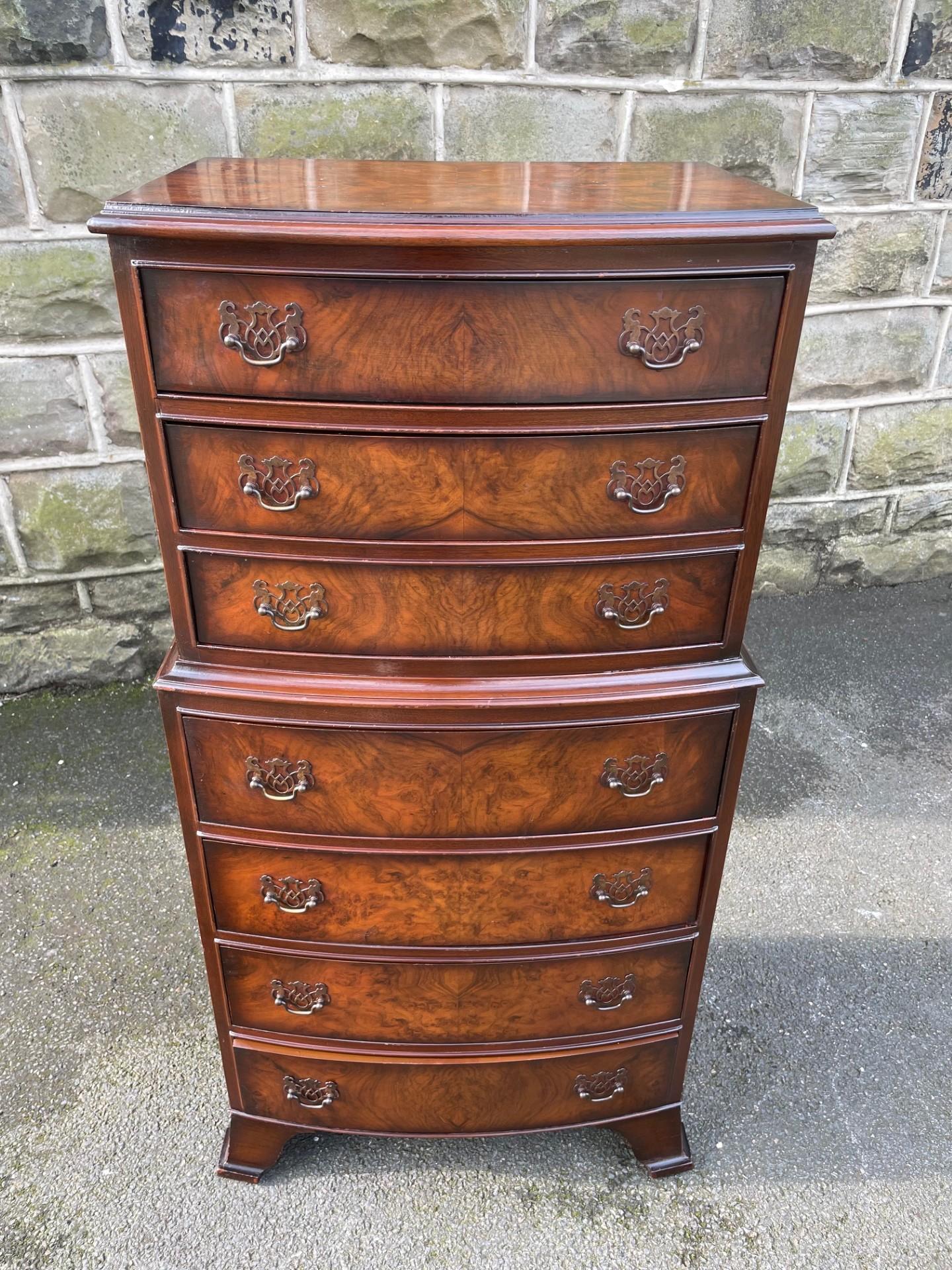 Antique Slim Burr Walnut Chest on Chest Tallboy