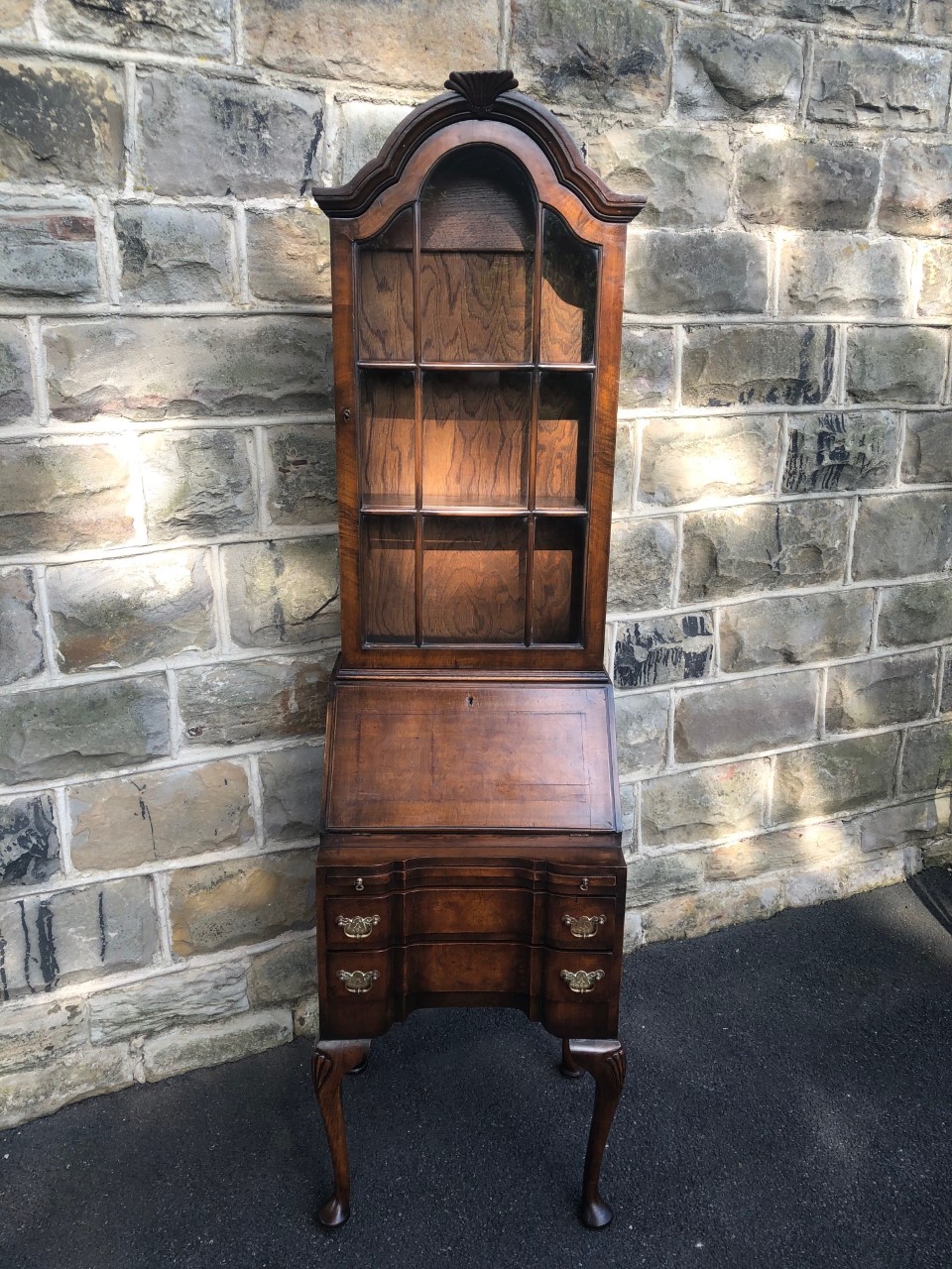 Antique Slim Figured Walnut Bureau Bookcase