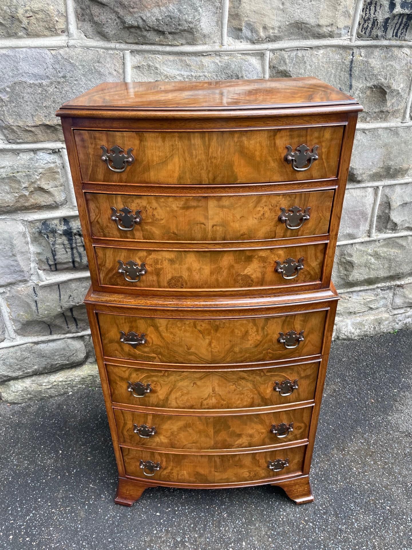 Antique Slim Figured Walnut Chest on Chest Tallboy