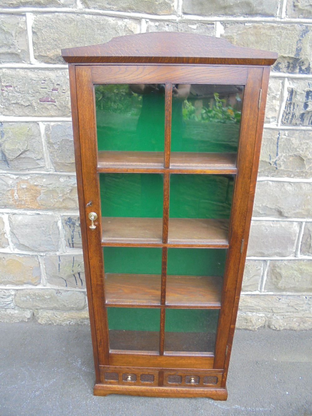 Antique Slim Glazed Oak Bookcase c.1900