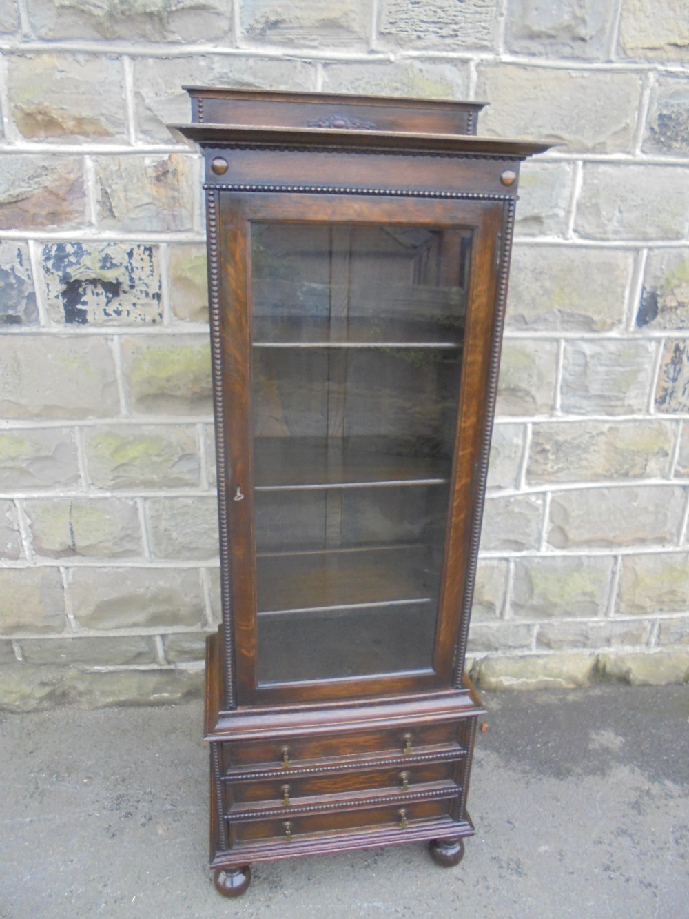 Antique Slim Oak Glazed Bookcase