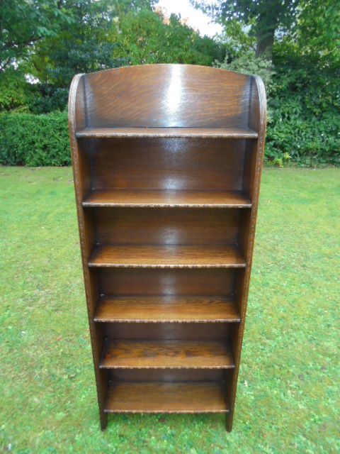 Antique Slim Oak Open Bookcase / Bookshelves c.1910