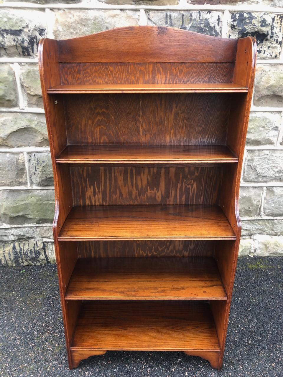 Antique Slim Oak Waterfall Open Bookcase