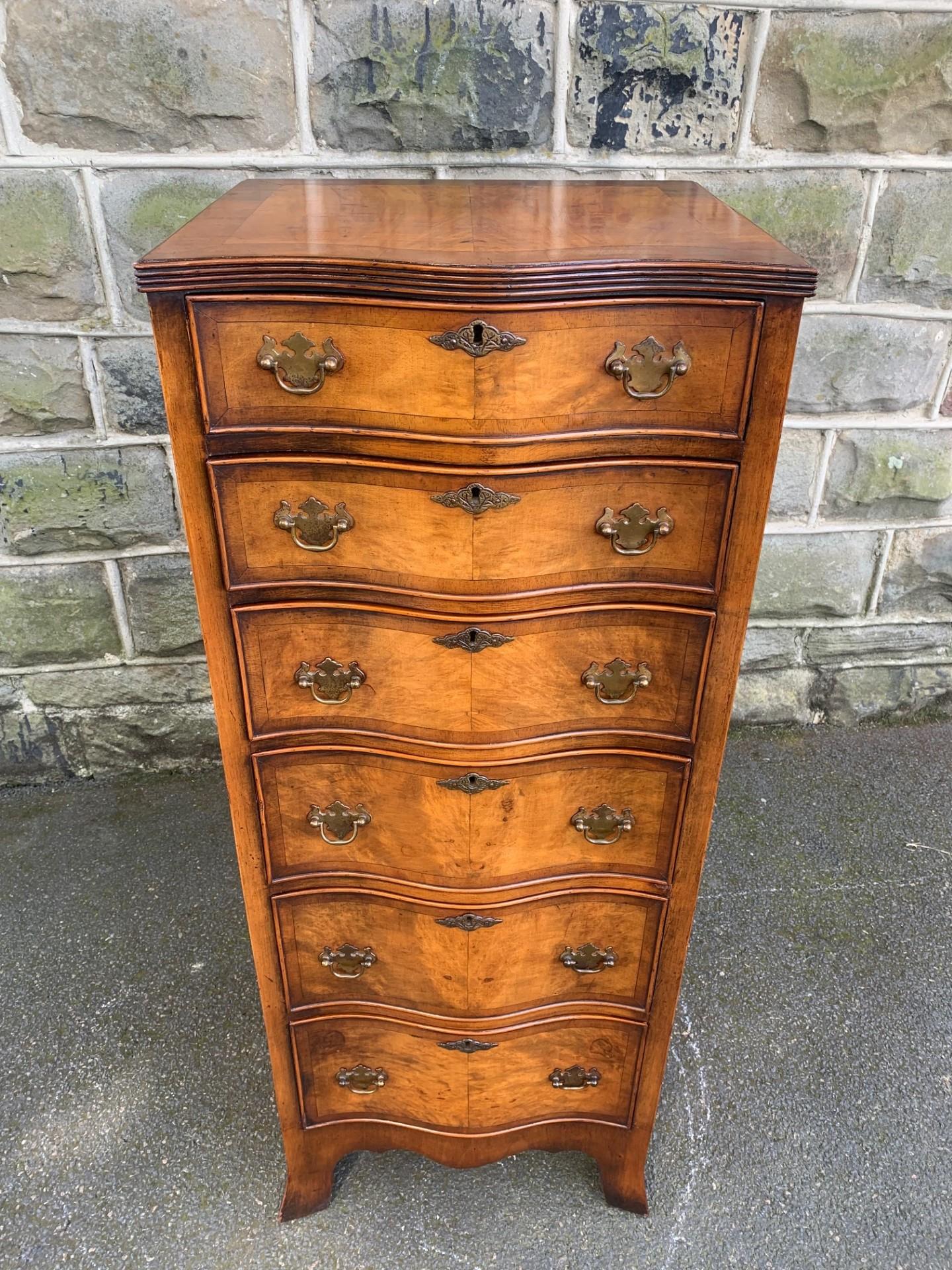 Antique Slim Walnut Serpentine 6 Height Chest Drawers (1 of 10)