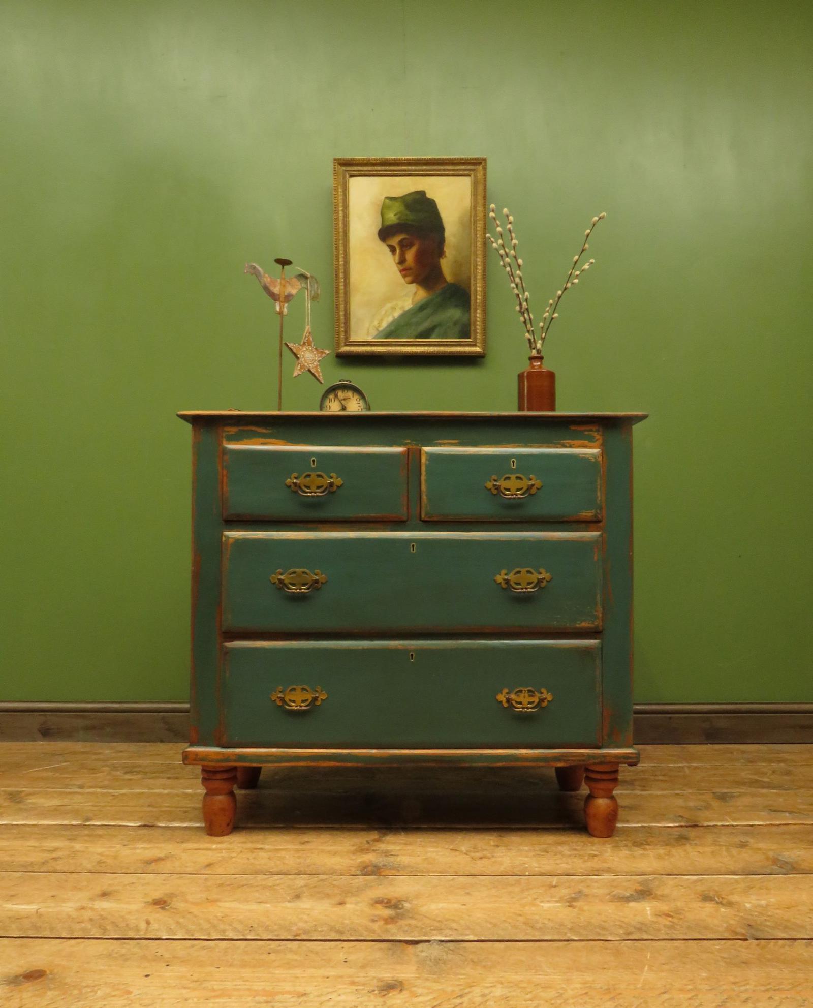 Antique Small Green Painted Chest of Drawers, Bohemian, Botanical, shabby chic