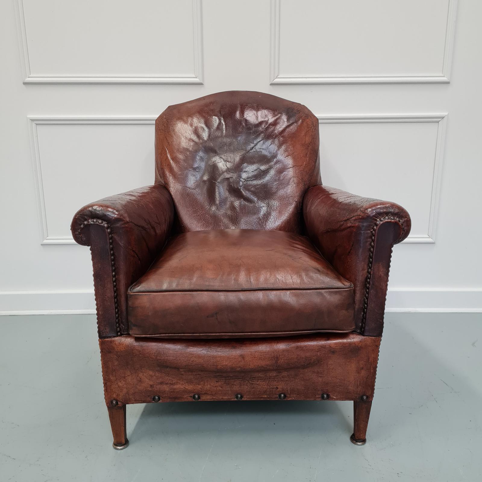 Antique Small Leather Library Chair