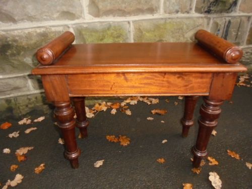 Antique Small Mahogany Stool / Hall Bench / Window Seat c.1860