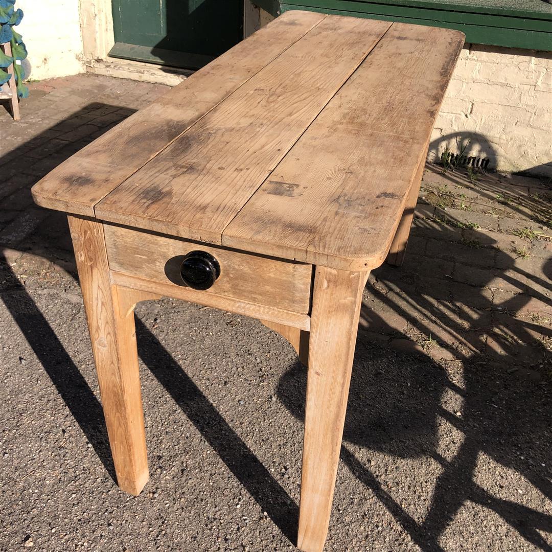 Antique Small Narrow Pine Plank Top Table with Drawer