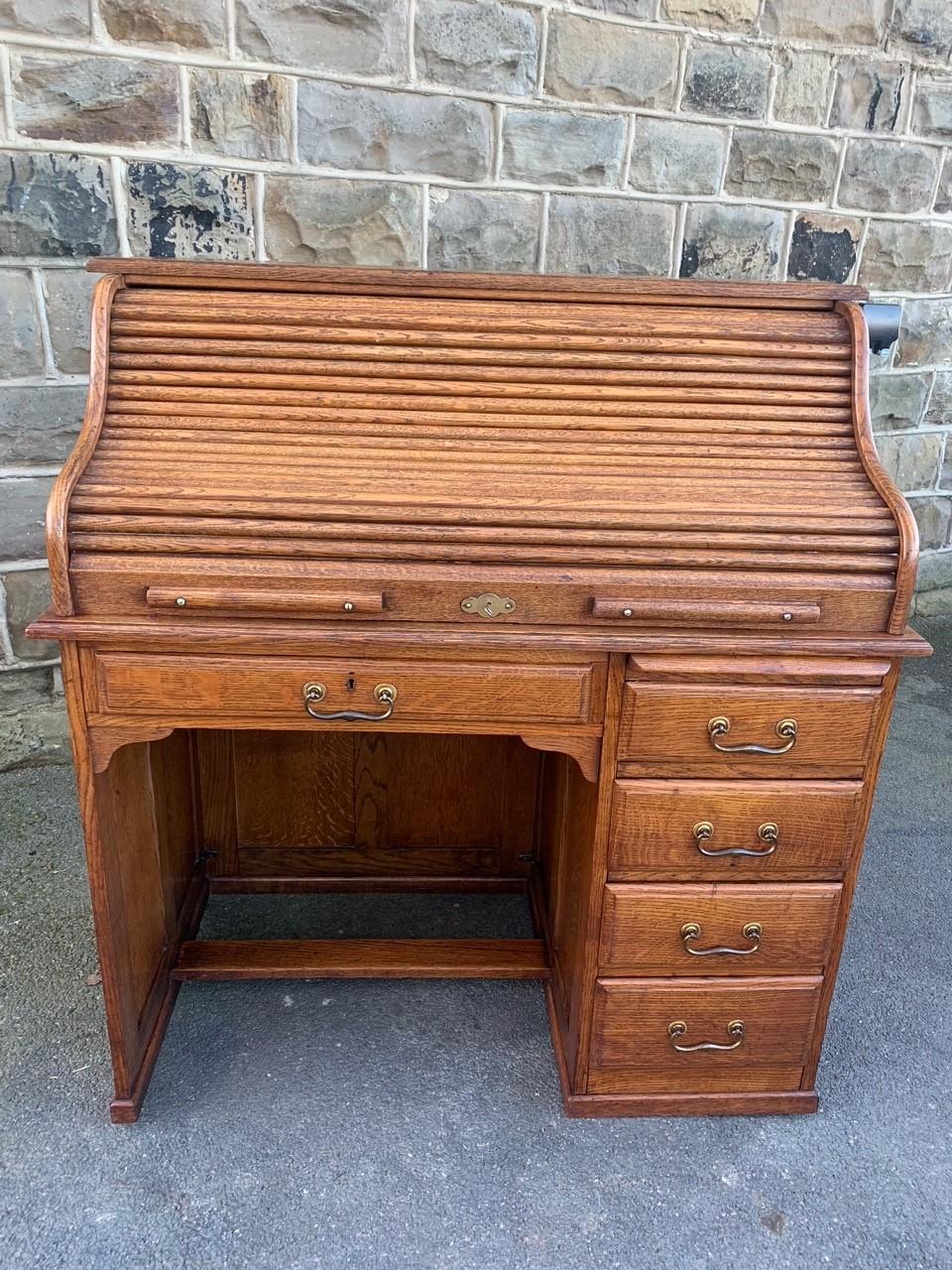 Antique Small Oak Roll Top Desk