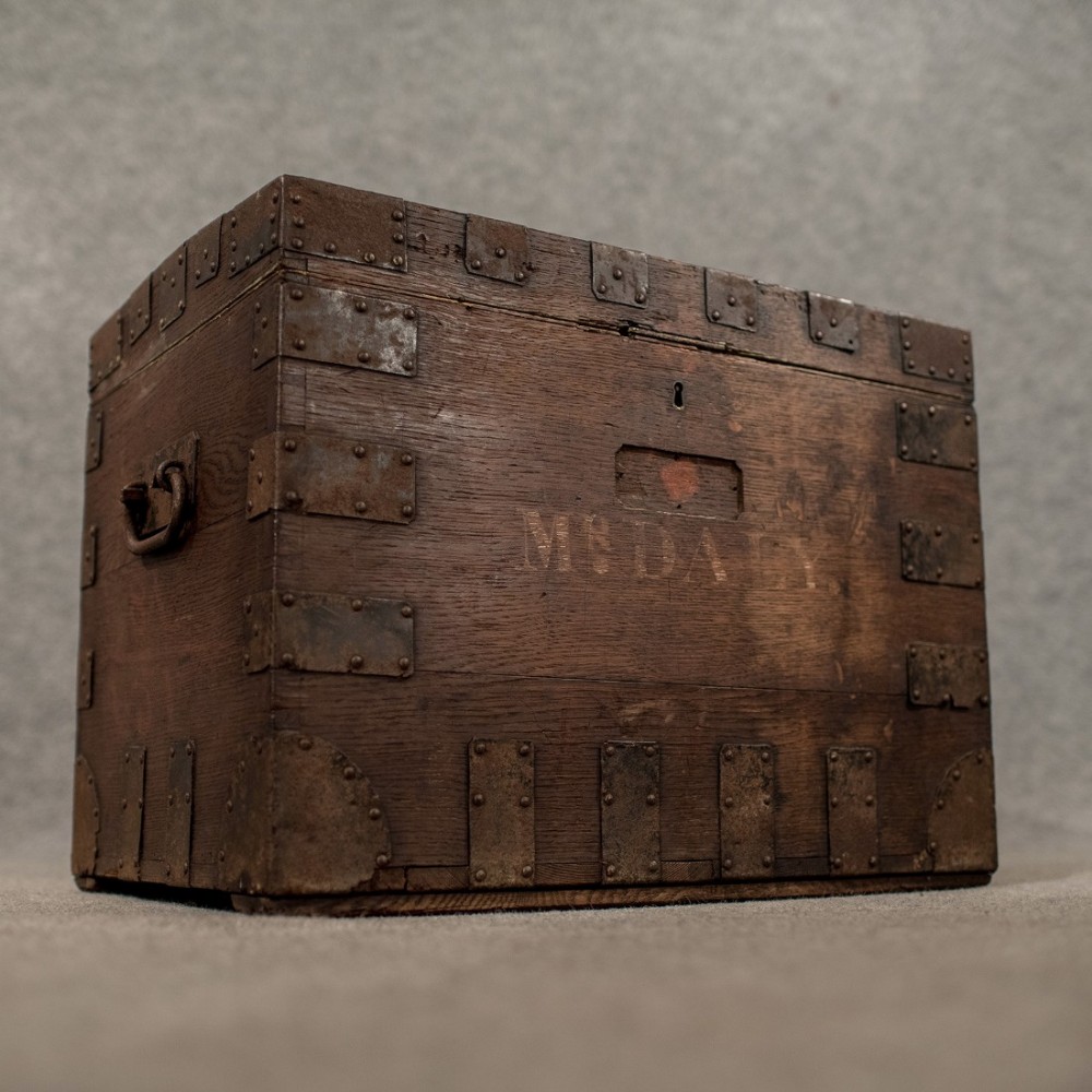 Antique Small Oak Silver Chest Ironbound Storage Trunk English Victorian c.1850